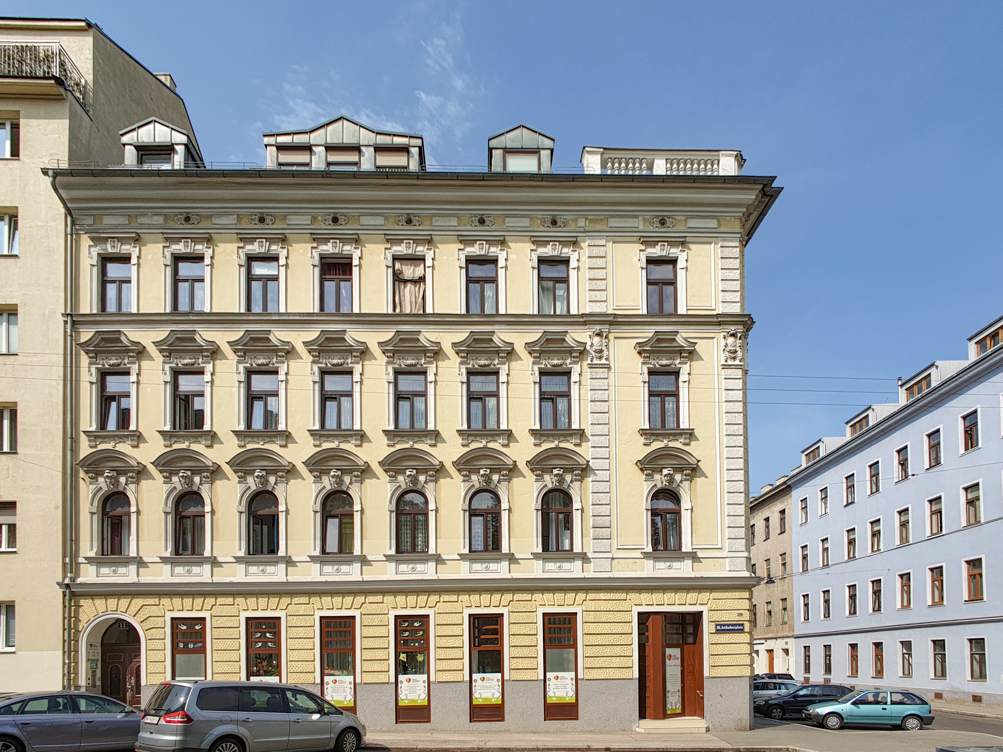 Das 4-stöckige Wohnhaus befindet sich direkt beim Arthaberpark. Hier wurden Einraumwohnungen bis hin zu 3-Zimmer Wohnungen generalsaniert und vermietet. Der ruhige Innenhof lädt zum täglichen Verweilen ein. Zudem befindet sich im Kellergeschoss eine Waschküche und ein Hobbyraum - jeder Wohneinheit ist ein Kellerabteil zugeordnet.