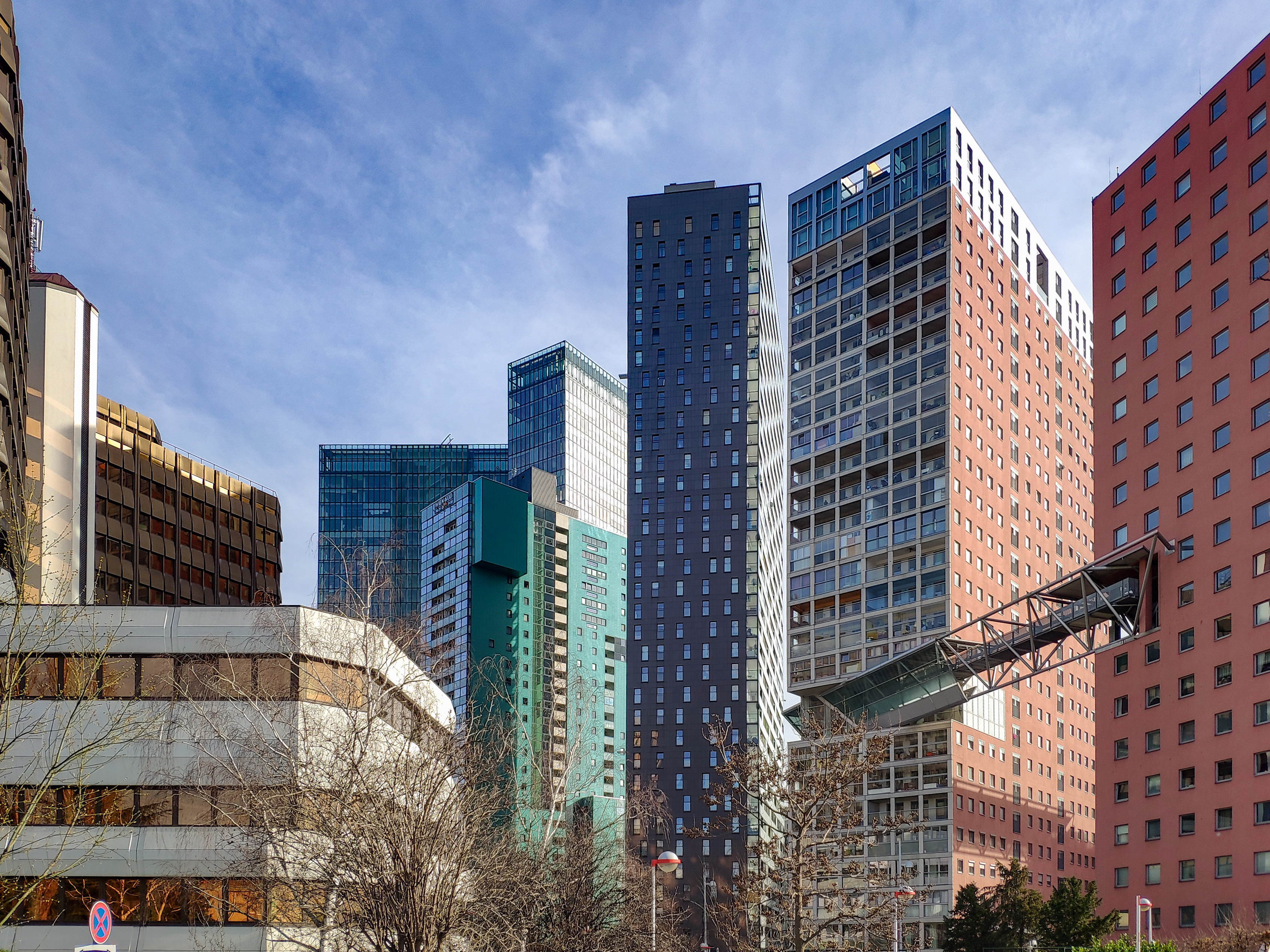 Die Gemeinnützige Wohnbauvereinigung "Wohnungseigentum" GmbH hat in Zusammenarbeit mit dem Architektenbüro Delugan - Meissl ein 34 geschossiges Wohnhaus mit insgesamt 292 Einheiten errichtet.