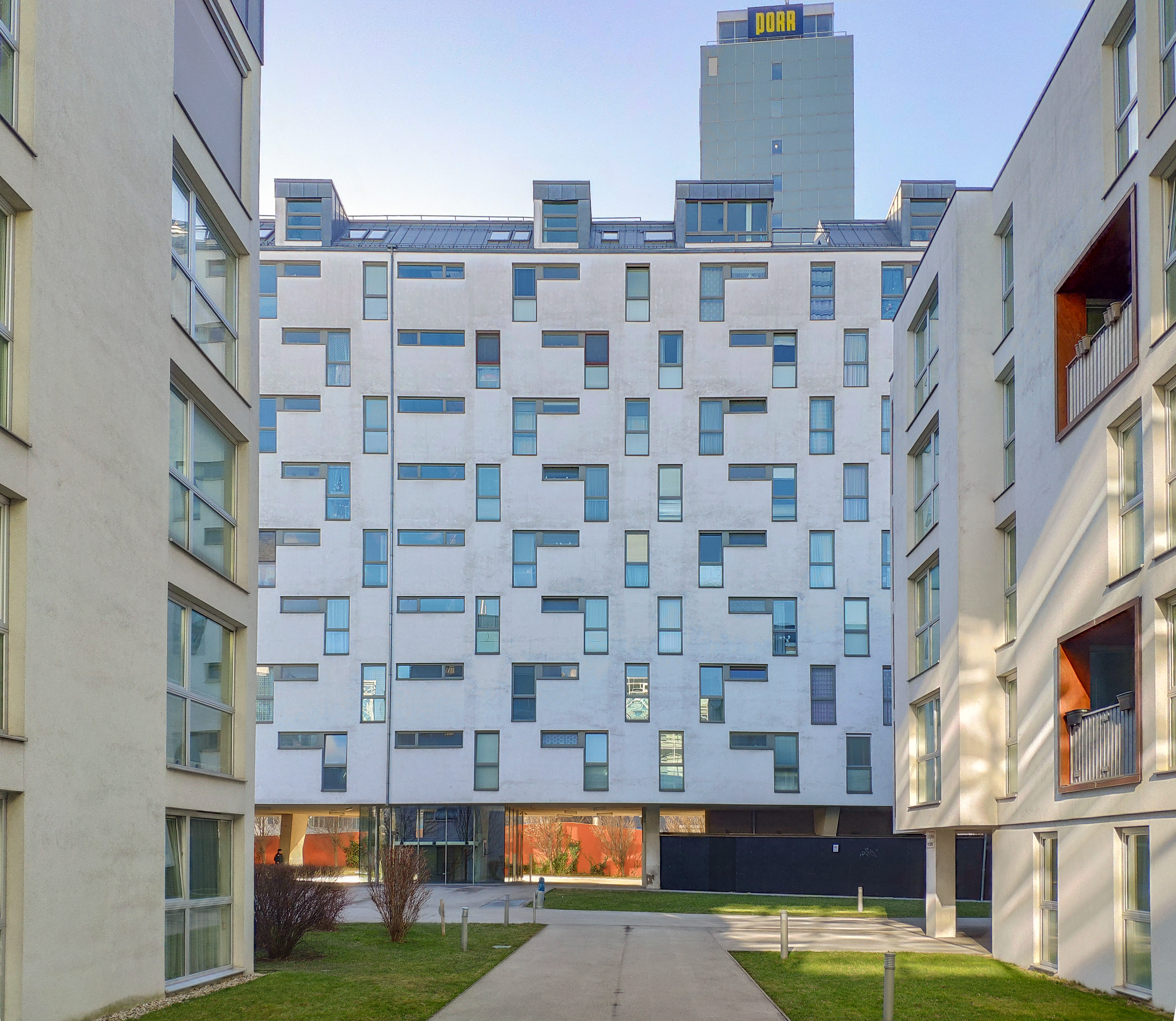 Die vom ÖSW errichtete Wohnhausanlage liegt direkt im modernen Stadtentwicklungsgebiet am Laaer Berg. Der Böhmische Prater und das Naherholungsgebiet Laaer Wald befinden sich in unmittelbarer Nähe des Standortes - Entspannung finden Sie auch in der nahegelegenen Therme Oberlaa.