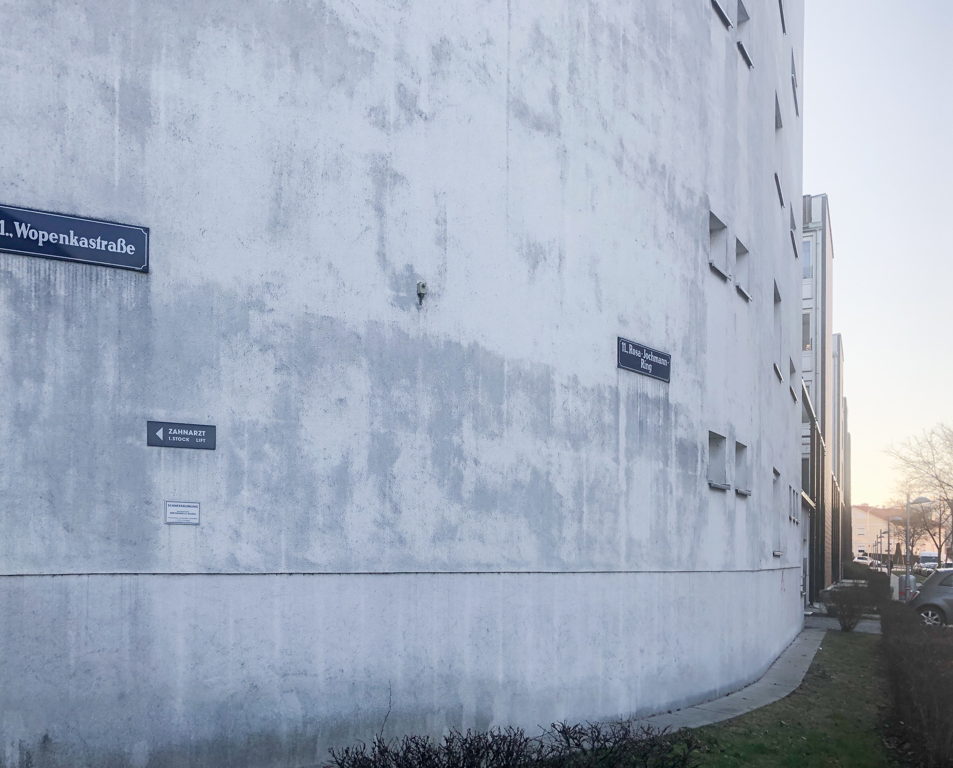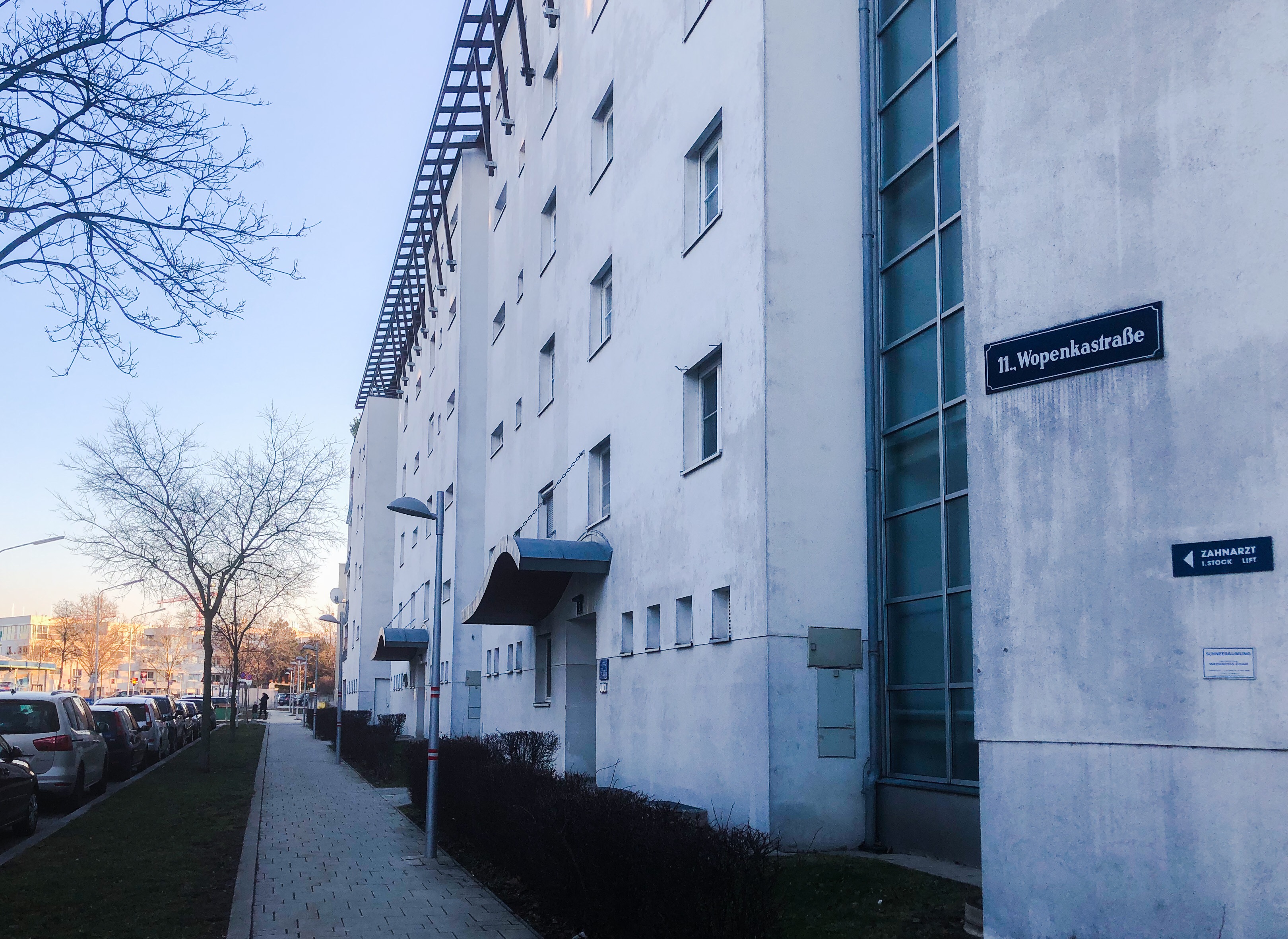 Die Wohnhausanlage befindet sich in unmittelbarer Nähe des Wiener Zentralfriedhofs und nahe der Wiener Stadtgrenze zu Schwechat.