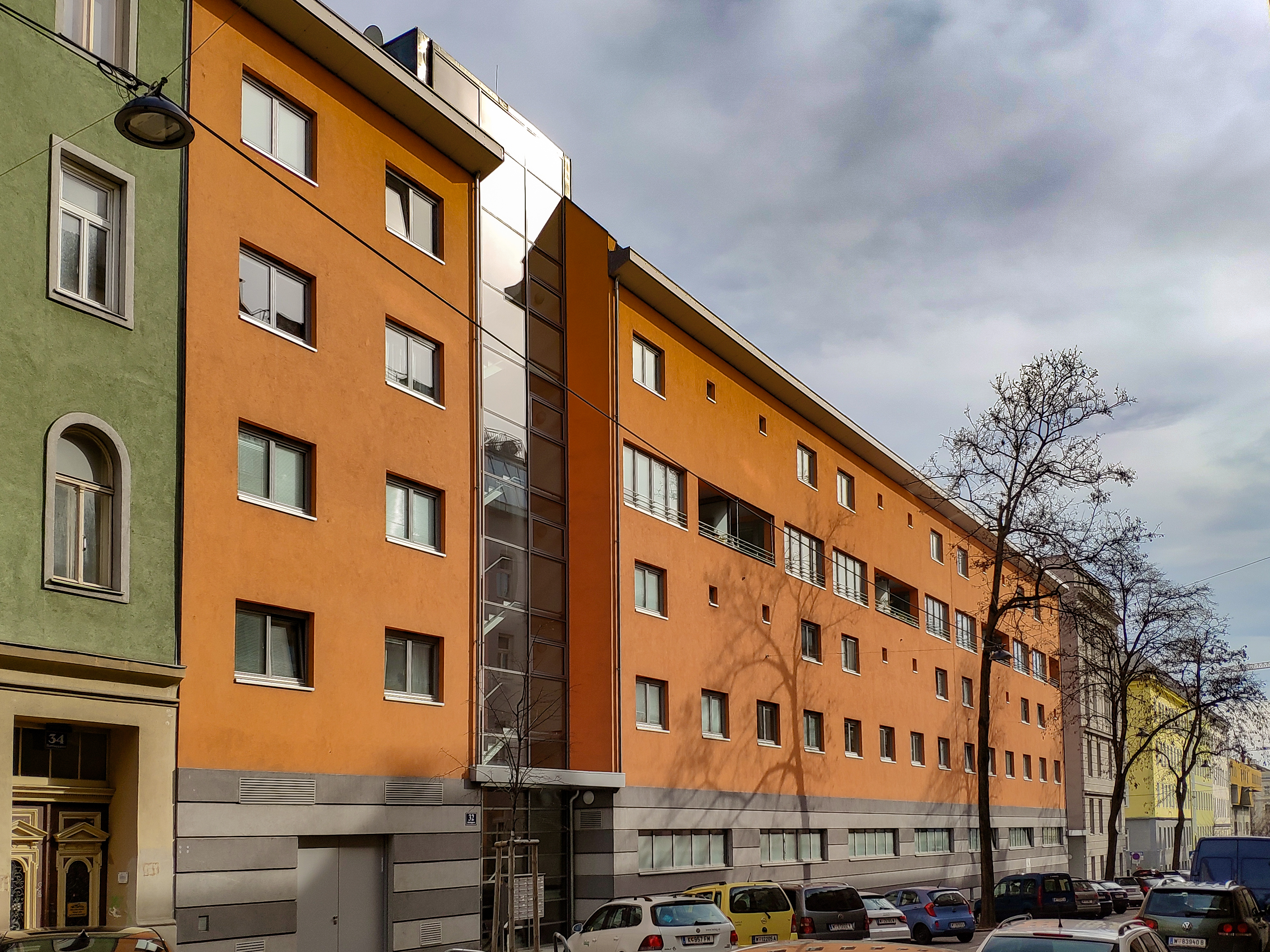 Die Anlage besteht aus einem Keller-, Erdgeschoss-, fünf Obergeschossen und einem Dachgeschoss und wird über ein belichtetes Stiegenhaus inklusive Aufzug verbunden.