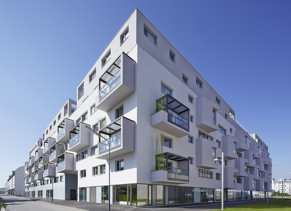 Die Besonderheit: Das Wohnprojekt gliedert sich in drei Bauteile. Im sogenannten „Familienturm“ (Stiege 7) mit eigenem Kinderspielraum sind fast ausschließlich größere Familienwohnungen. Im „Singleturm“ (Stiege 6), in dem auch eine Gemeinschaftsküche angesiedelt ist, sind neben Kleinwohnungen auch 2-3 Zimmerwohnungen mit praktischen Grundrissen. Der dritte Bauteil entlang der Attemsgasse bietet Wohnungen verschiedenster Größen. Die wohnungseigenen Freiräume sind durch ihre sorgfältige Konzeption bestens nutzbar.