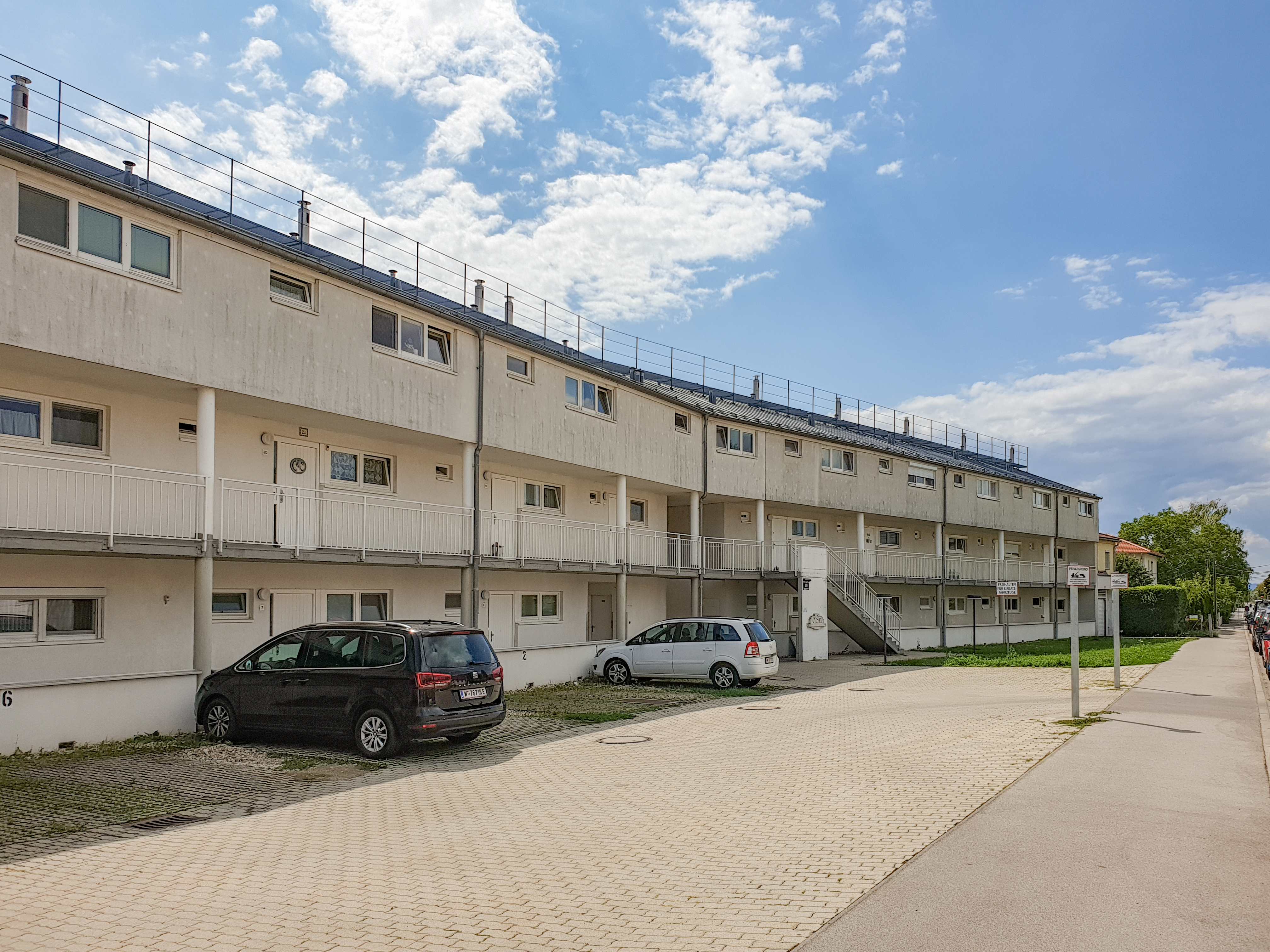 Wohnen in der grünen DonaustadtIn diesem 1998 errichteten geförderten Wohnbau wurden 79 Miet- und Eigentumswohnungen zwischen 55 und 123 m² realisiert. Im Innenhof der Anlage befindet sich ein Kinderspielplatz und gleich daneben einen Indoor-Kinderspielraum für Schlechtwetter-Tage.