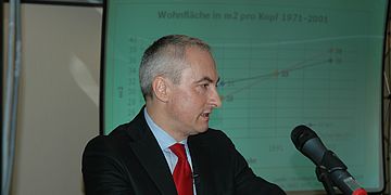 Im Rahmen der Fachtagung "Die Zeit läuft uns davon" berichtete Michael Pech über Klimaschutzmaßnahmen im Wohnbau ... -