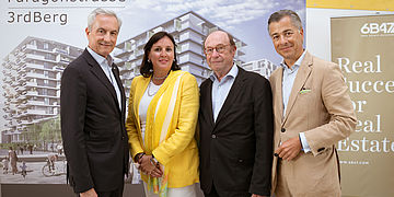 6B47, ÖSW & WE feiern Dachgleiche für Projekte am „Erdberger Mais“: Meilenstein in Quartiersentwicklung auf dem Areal des „Erdberger Mais“.... -
