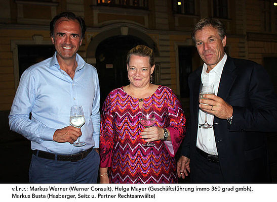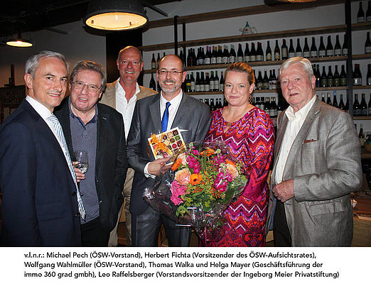 Neben einem entspannten Get-Together, Lounge-Musik und kulinarisch ausgewählter Köstlichkeiten wurden die beiden Geschäftsführer der immo 360 grad, Helga Mayer und Thomas Walka, vom Aufsichtsratsvorsitzenden KR Herbert Fichta und den Vorständen der ÖSW AG – Michael Pech und Wolfgang Wahlmüller – für den Aufbau und das stetige Wachstum sowie die erfolgreiche Führung des Unternehmens in den vergangenen 15 Jahren beglückwünscht.