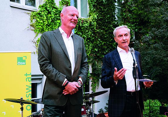 Die ÖSW AG feiert heuer ihr 70jähriges Bestehen. Ein Grund, zu feiern - und mit neuen Zielen und Visionen in die Zukunft zu blicken. Dem besonderen Anlass wurde diesmal auch das jährlich stattfindende Hoffest, das mittlerweile traditionelle Highlight am Ende des Sommers, gewidmet. Die Vorstände Michael Pech und Wolfgang Wahlmüller empfingen am Donnerstag, 12. September 2019, Gäste aus Bauwirtschaft, Architektur, Finanzwesen und Politik im stimmungsvollen Ambiente der grünen Innenhöfe des Firmensitzes in Wien Josefstadt.