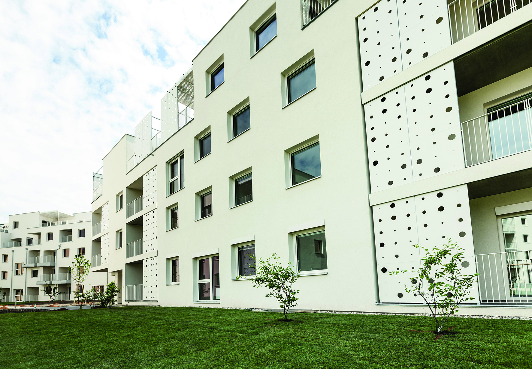 Die 142 geförderten Mietwohnungen in der Fahngasse 6, mit zwei bis vier Zimmern bzw. 50 bis 112 m2, verfügen alle über Loggien bzw. Balkone oder Terrassen. Hinzu kommen 14 nutzungsflexible Ateliers sowie 5 Wohnungen der Volkshilfe in der Sockelzone. Letztere wurden mit der Möglichkeit der Kombination der Wohneinheiten realisiert. Neben der optimalen Abstimmung auf unterschiedliche Bedürfnisse der BewohnerInnen, wurde besonderes Augenmerk auf die Energieeffizienz gelegt. Der Einsatz von Solarenergie (Fotovoltaik) zur Energieversorgung sowie die Verwendung wartungsarmer wie langlebiger Materialien, helfen Heiz- und Betriebskosten zu sparen und leisten einen wertvollen Beitrag zum kostengünstigen Wohnen.
