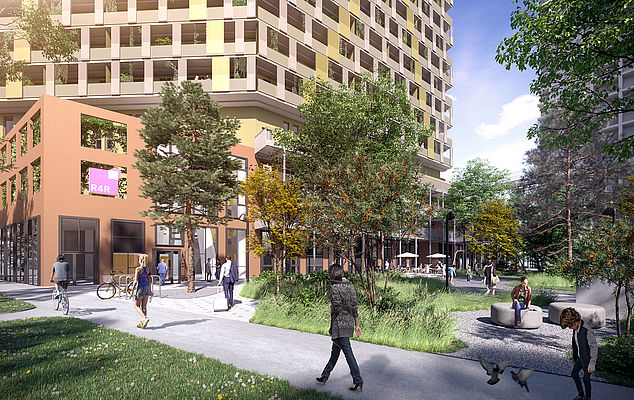 Das neue Quartier THE MARKS wird in Kooperation mit drei weiteren Bauträgern realisiert und umfasst insgesamt drei Wohntürme mit gemeinsamer Sockelzone. Der vielfältige Nutzungs- und Wohnungsmix des Quartiers umfasst rund 1.200 Wohneinheiten sowie diverse Entwicklungs-, Büro- und Gewerbeflächen, etwa auch einen großen Supermarkt und einen Kindergarten.