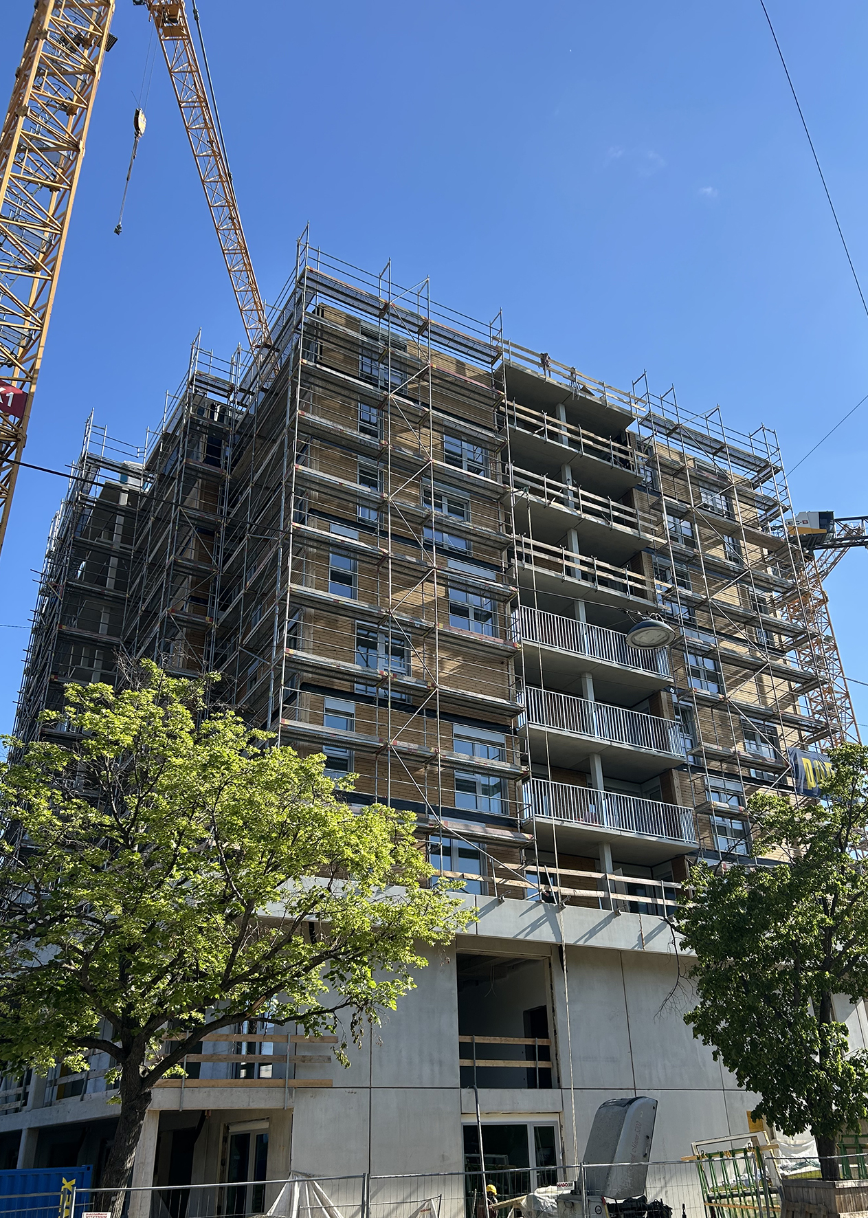 Alles auf Schiene bei ÖSW Projekt B.R.I.O.! Mit dem innovativen Wohnquartier realisiert der ÖSW Konzern bereits sein zweites Projekt am Quartier Neues Landgut beim Wiener Hauptbahnhof. B.R.I.O. wird mit 175 geförderten Mietwohnungen, einem inklusiven Nachbarschaftskonzept und viel Grün ein Vorzeigeprojekt für sozial und ökologisch nachhaltiges Bauen und Leben mitten in der Stadt. Es befindet sich erfolgreich in Errichtung und soll im Frühjahr 2026 fertiggestellt werden.