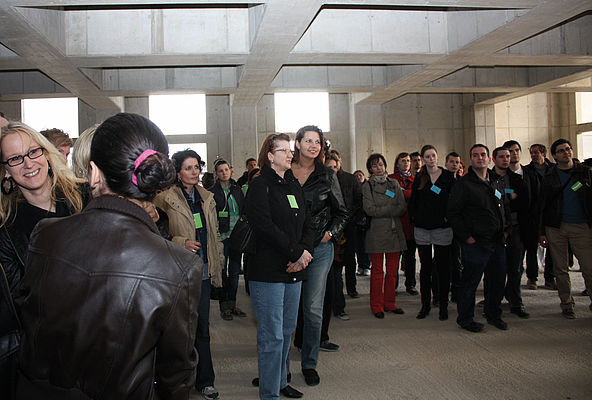 Nur einen Tag später zelebrierte das CITYCOM2-Team das erste feierliche „get-together“ auf der Baustelle. Rund 100 Apartmentbewohner und WG-Interessenten waren zu einem ersten Kennenlernen in entspannter Atmosphäre inklusive leckerer Snacks gekommen. Nach einer ersten Runde Sekt im späteren ASKÖ-Bewegungsraum, in dem zukünftig wohl mehr geschwitzt als angestoßen wird, ging es gesammelt in die als Feierlocation perfekt vorbereitete Tiefgarage. Neben einer Vielzahl von kleinen Snacks konnte die zukünftige CITYCOM2-Community auch eine große Auswahl an live zubereiteten Crêpes genießen – ein gelungener Appetizer für die Gäste, schließlich ist eine Crêperie für den Café- und Lounge-Bereich von CITYCOM2 in Planung! In die farblichen Kategorien „Apartmentbewohner“ und „WG-Interessent“ eingeteilt, erhielten alle Besucher Namensschilder, die auch mit der zukünftigen Adresse oder mit eventuellen WG-Gesuchen versehen werden konnten. Während die Apartmentbewohner sich auf die Suche nach ihren zukünftigen Nachbarn begaben haben sich schon neue WGs gefunden! Unterstützt wurde die Kommunikation durch ein lustiges Gewinnspiel, bei dem die meisten Teilnehmer an der Frage nach der Bedeutung des Namens CITYCOM2 (City Community, 2. Bezirk) scheiterten, und eine von den Soziologen von wohnbund:consult ausgearbeitete Tischrunde. Neben den „klassischen“ WGs werden übrigens noch Mitbewohner für eine Familien-WG und eine Senioren-WG gesucht! Interessenten können sich einfach per Mail an citycom2@oesw.at melden. Dank dem positiven Feedback ist es nun fix: In nicht allzu ferner Zukunft wird es ein zweites „get-together“ geben - mit neuen Überraschungen und zum weiteren Kennenlernen.