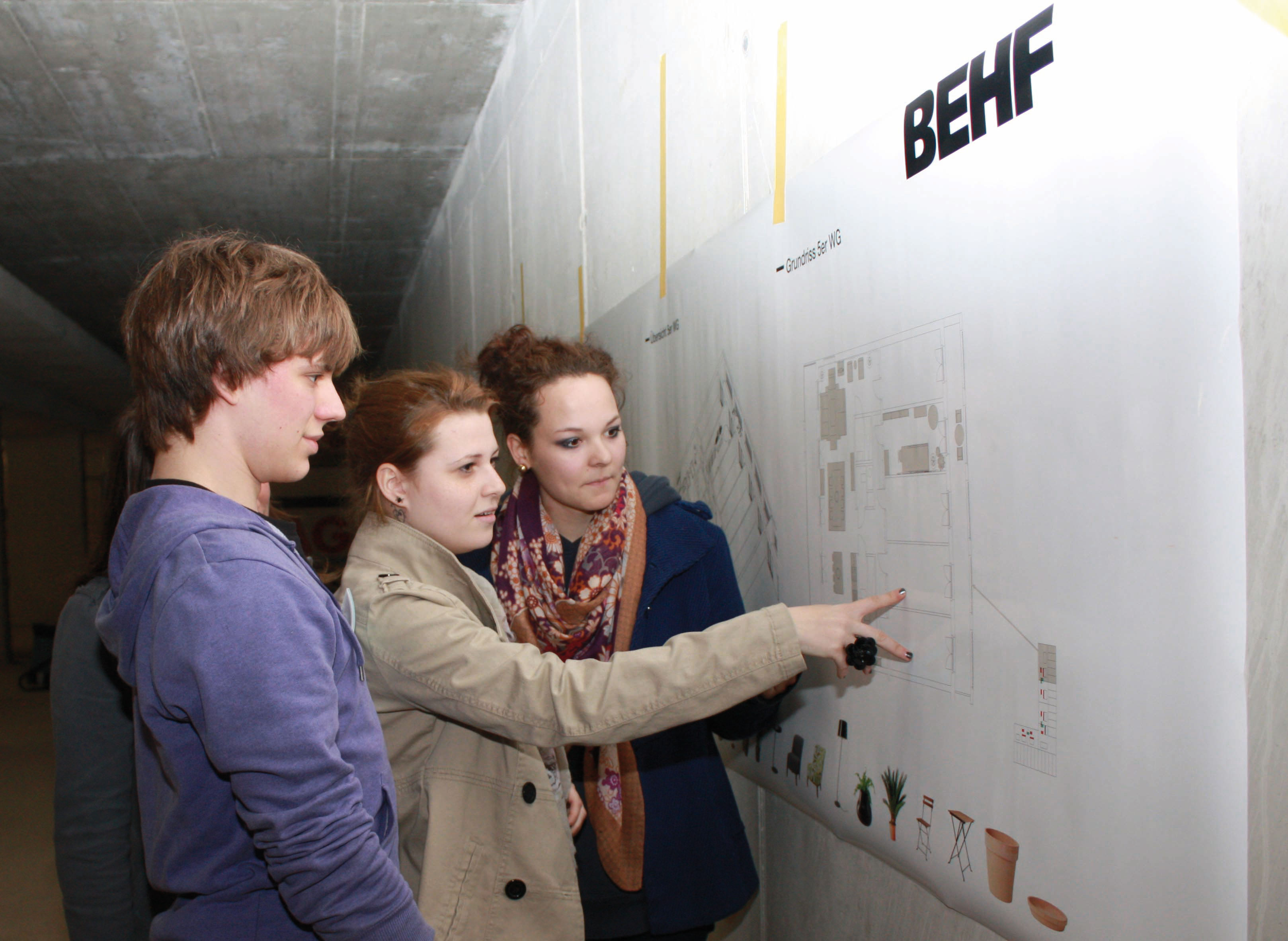 Damit sich auch jeder vorstellen kann wie schön eine CITYCOM2-WG einmal sein könnte, wird im Sommer dieses Jahres eine Muster-WG eröffnet. Funktionell und zugleich stylisch eingerichtet vom Team der BEHF Architekten kann diese dann von allen WG-Interessenten besichtigt werden. Die Einrichtungspläne für die Muster-WG wurden in den Räumlichkeiten des „get-together“ auf großen Plakaten präsentiert. Ende des Jahres 2011 ist es übrigens voraussichtlich so weit – die Apartments und WGs von CITYCOM2 werden an ihre Community übergeben, ein außergewöhnliches Wohnprojekt wird Realität.