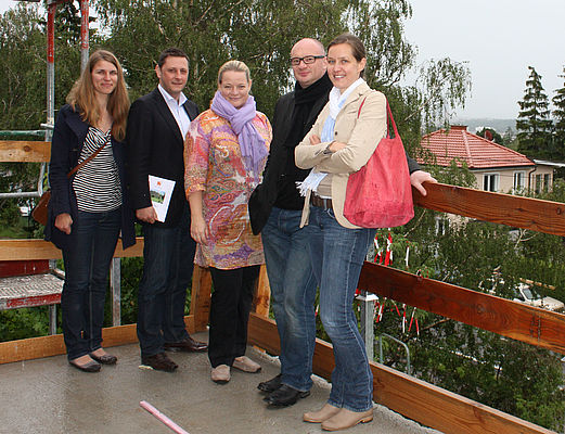 Die immo 360° errichtet Ecke Alfons-Mucha-Weg / Flötzersteig in Wien-Hütteldorf fünf exklusive Geschoss- und Maisonettewohnungen in absoluter Ruhelage. Das vom Architekturbüro Superblock geplante Projekt besticht durch seine Stadtrandlage, die vielfältigen Freizeitmöglichkeiten im Umfeld sowie eine moderne Architektur. Die Fertigstellung ist für Ende 2012 geplant. Am 4. Juni fanden sich anlässlich der traditionellen Gleichenfeier alle Projektbeteiligten zusammen und besichtigten den fertigstellten Rohbau. „Wir freuen uns sehr, dass es bisher auf der Baustelle keine Unfälle gab und wünschen allen Baubeteiligten weiterhin Glück auf!“, so Helga Mayer, Geschäftsführerin der immo 360°, bei der Gleichenfeier.
