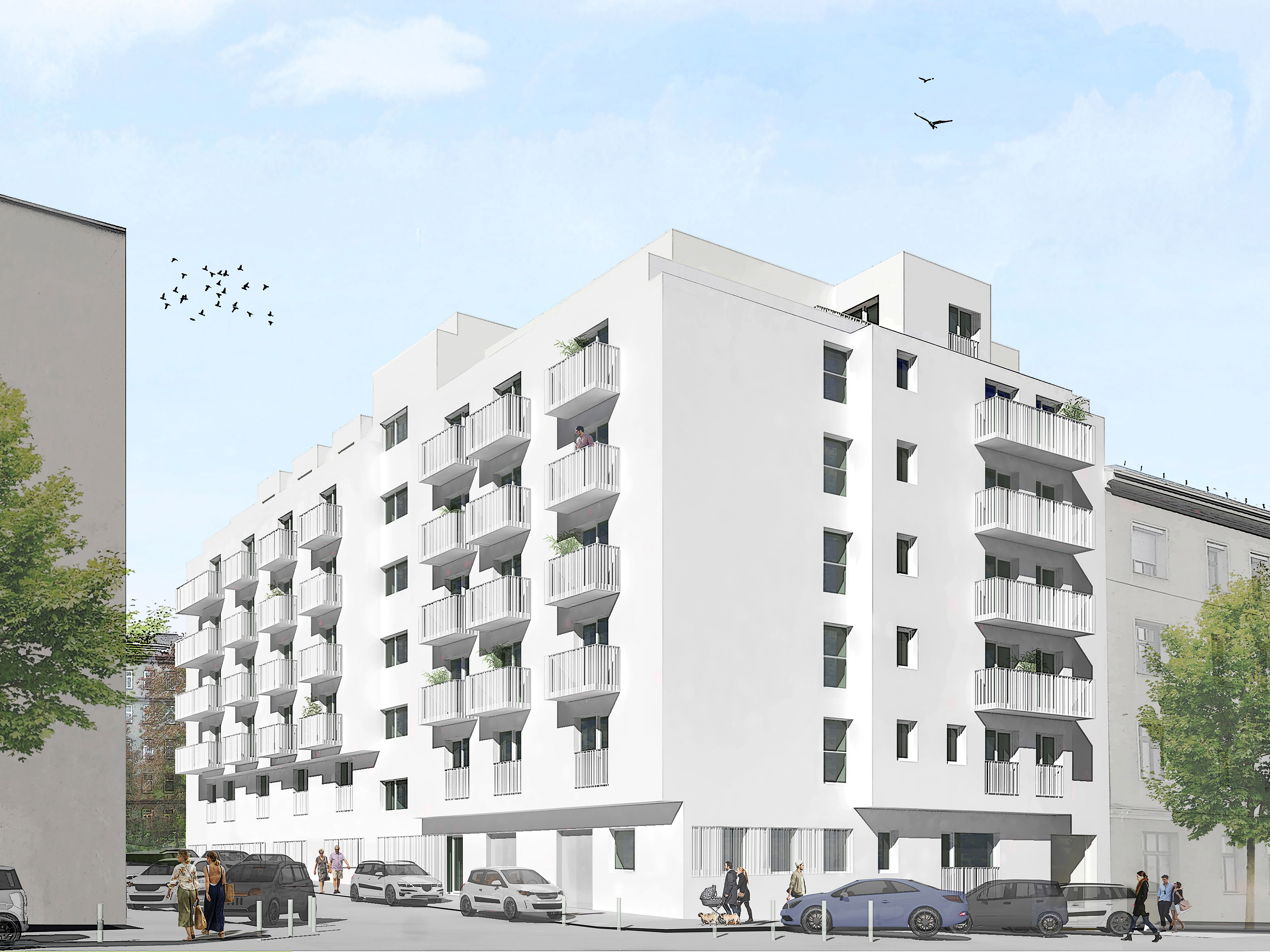 Das siebenstöckige Wohngebäude wird insgesamt 89 Einzimmerwohnungen umfassen. Diese sind mit kompakten Grundrissen von rund 23 m² ausgelegt, überwiegend ergänzt von einem kleinen Balkon. In jeder Etage wird eine Gemeinschaftsküche als Erweiterung des Wohnraums und als Treffpunkt für die Bewohner eingerichtet.