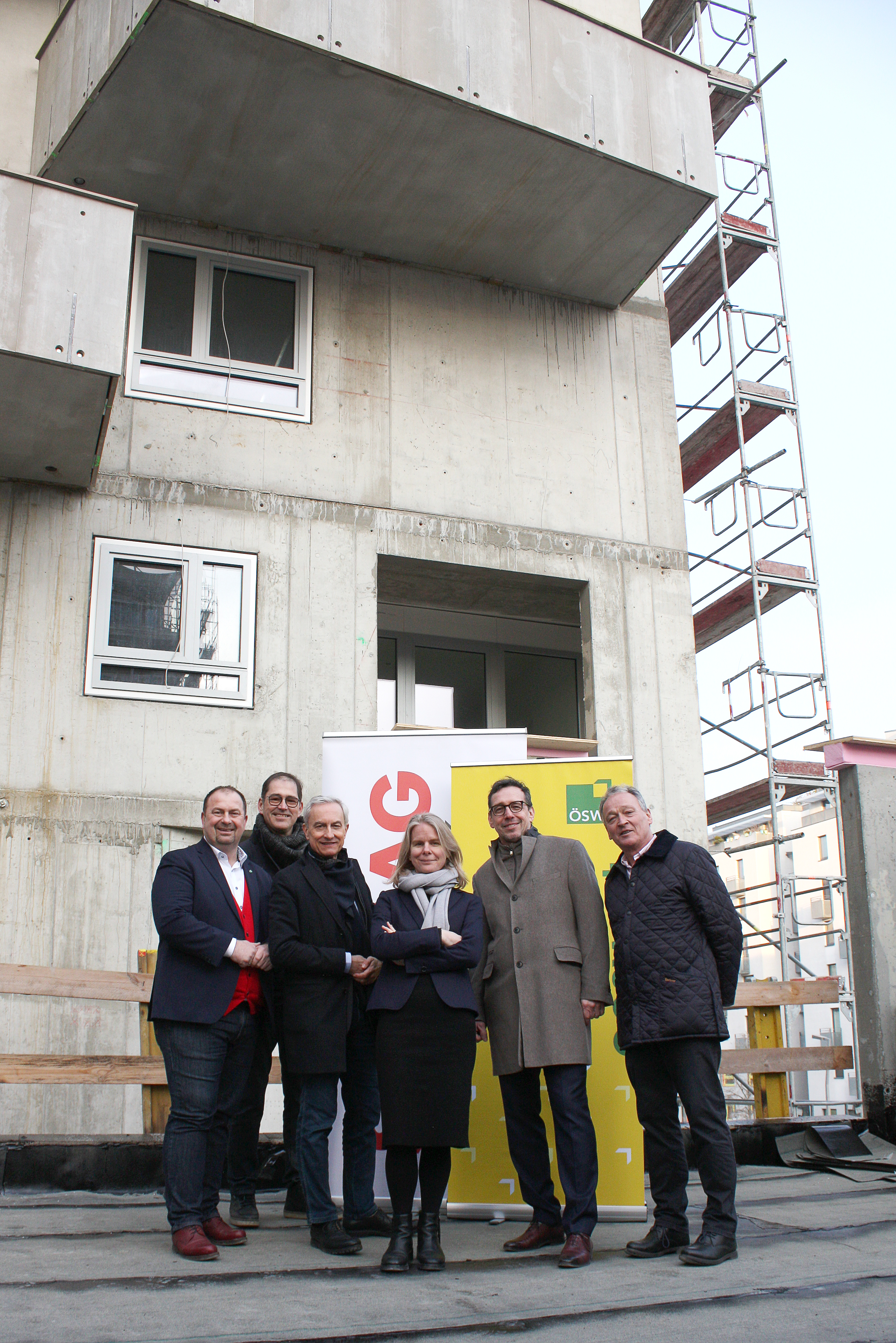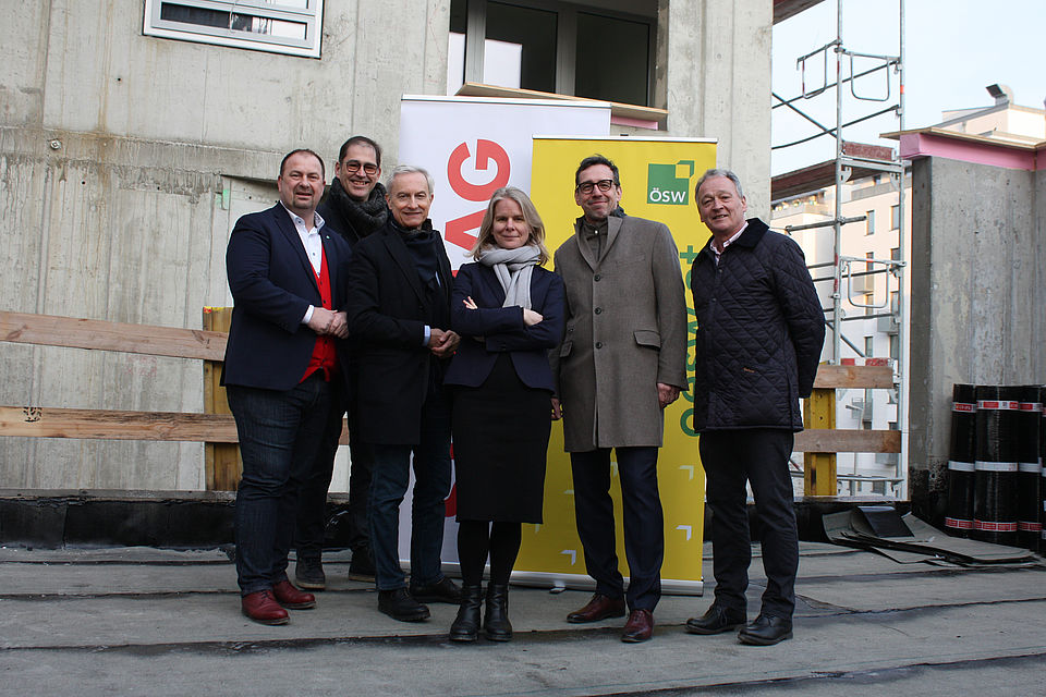 An der Feier anlässlich der Fertigstellung des Rohbaus nahmen unter anderem Bezirksvorsteher Alexander Nikolai, Michael Pech (ÖSW-AG), Thomas Kreiner (KIBB Immobilien GmbH), Markus Engerth (Strabag AG) sowie die Architektin Lina Streeruwitz (StudioVlayStreeruwitz ZT GmbH) teil.
