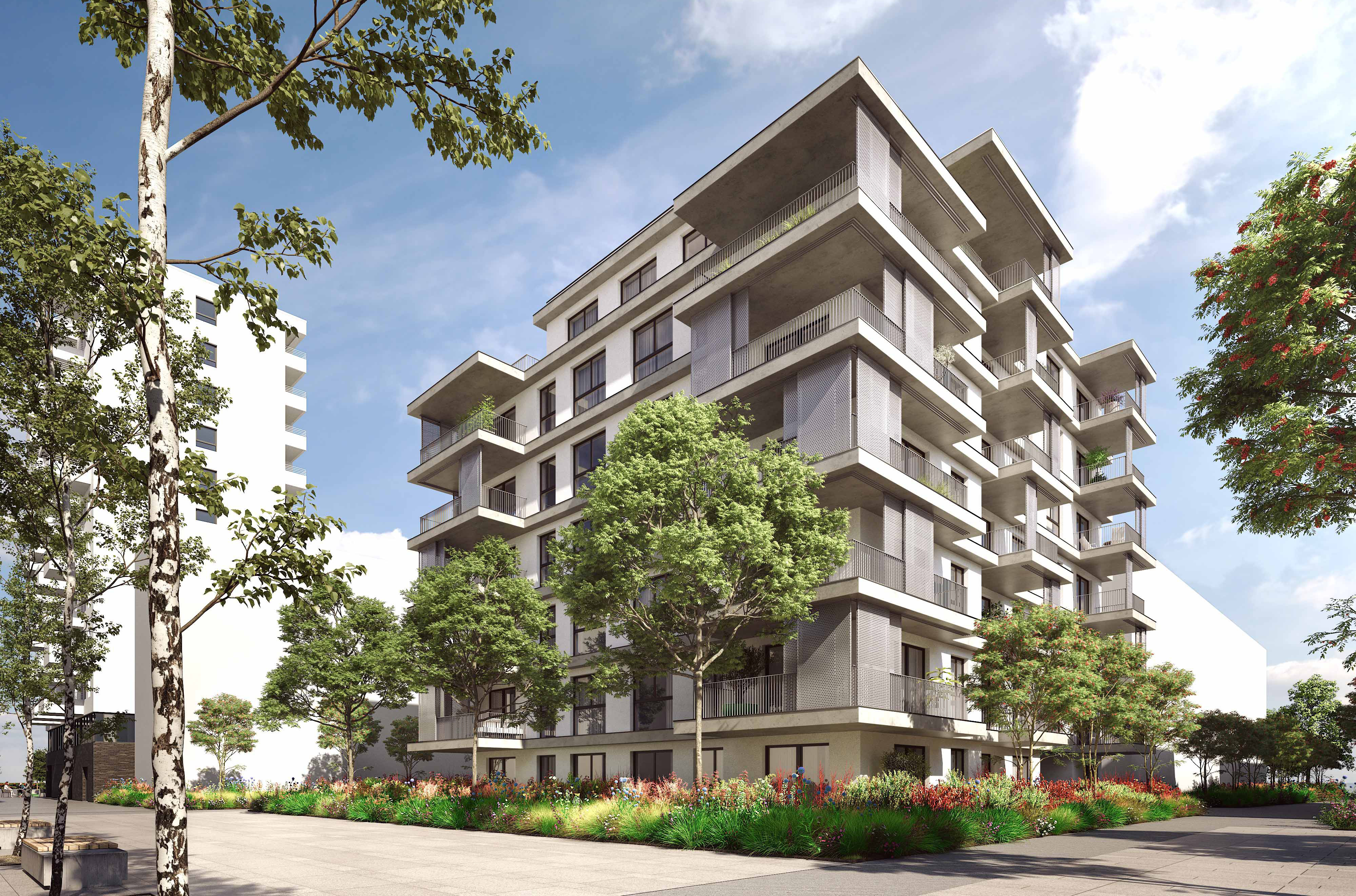 Der heutige Rohbau von reLAX 151 E soll bereits im Frühjahr 2023 bezugsfertig sein. Mit dem Projekt entstehen 38 Eigentumswohnungen mit 50 bis 64 m². Das siebengeschossige Wohngebäude liegt an dem kleinen Platz, der durch die Fußgängerpromenade im Zentrum des Quartiers gebildet wird. Die einzelnen Gebäudeebenen sind durch umlaufende Mauersimse in der Fassade klar ablesbar. Auskragende Balkon‐ und Dachelemente betonen ebenfalls die Horizontale und „erden“ das Gebäude optisch. Vor‐ und Rücksprünge in der Fassadenlinie, bodentiefe Fenster und Verschattungselemente an den Balkonbrüstungen verleihen dem Baukörper Vielfalt und Tiefe. Die Architektursprache wirkt so zeitlos wie modern. Alle Wohnungen verfügen über großzügige, private Freiräume in Form von Balkonen, Terrassen oder Eigengärten.