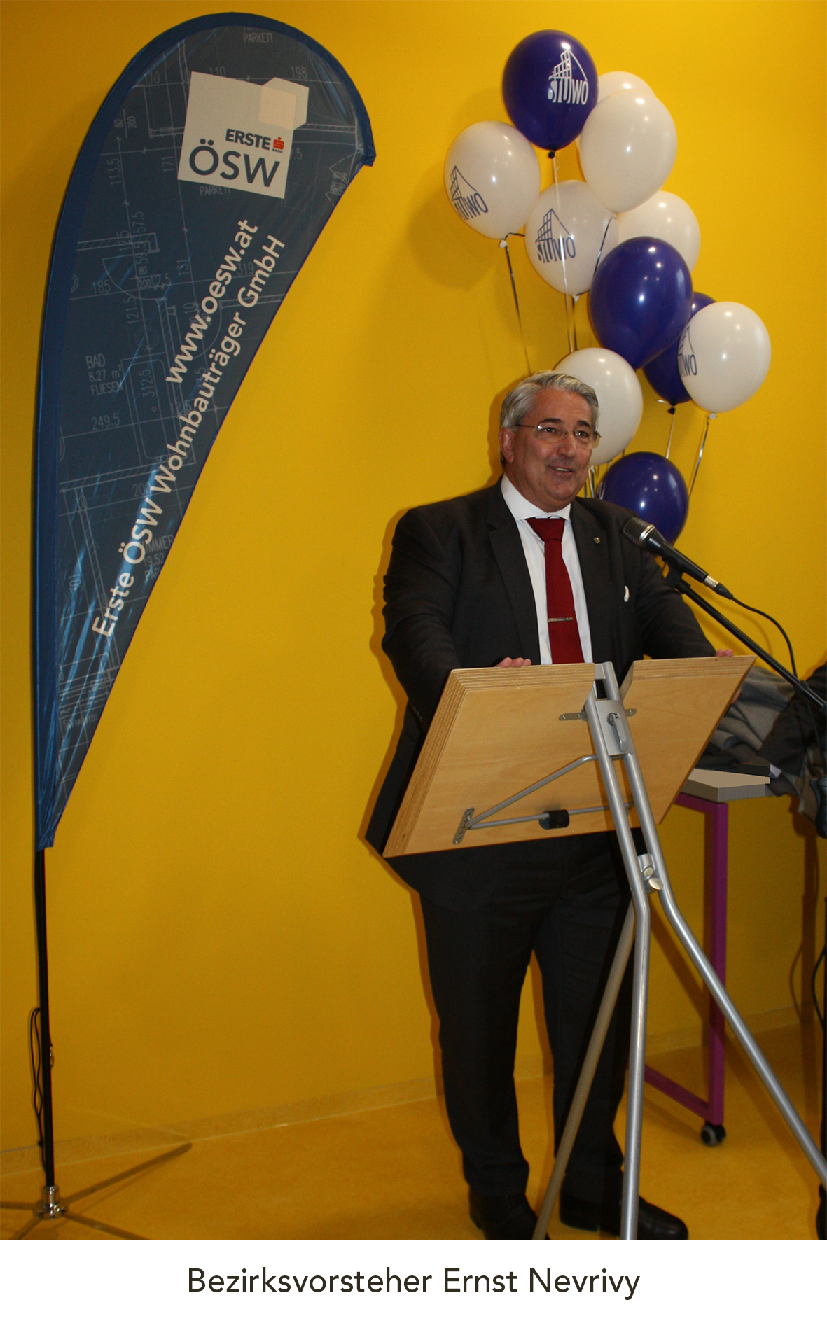 „Wir freuen uns, mit der Fertigstellung dieses modernen Heimes erstmals auch für Studierende - in einem so innovativen und zukunftsweisenden Stadtentwicklungsgebiet wie der Seestadt Aspern – Wohnraum zu schaffen. Die Kooperation mit der STUWO als Mieter des Hauses, ist hoffentlich der Beginn einer langjährigen Partnerschaft“, so Helga Mayer, ERSTE ÖSW Wohnbauträger GmbH.