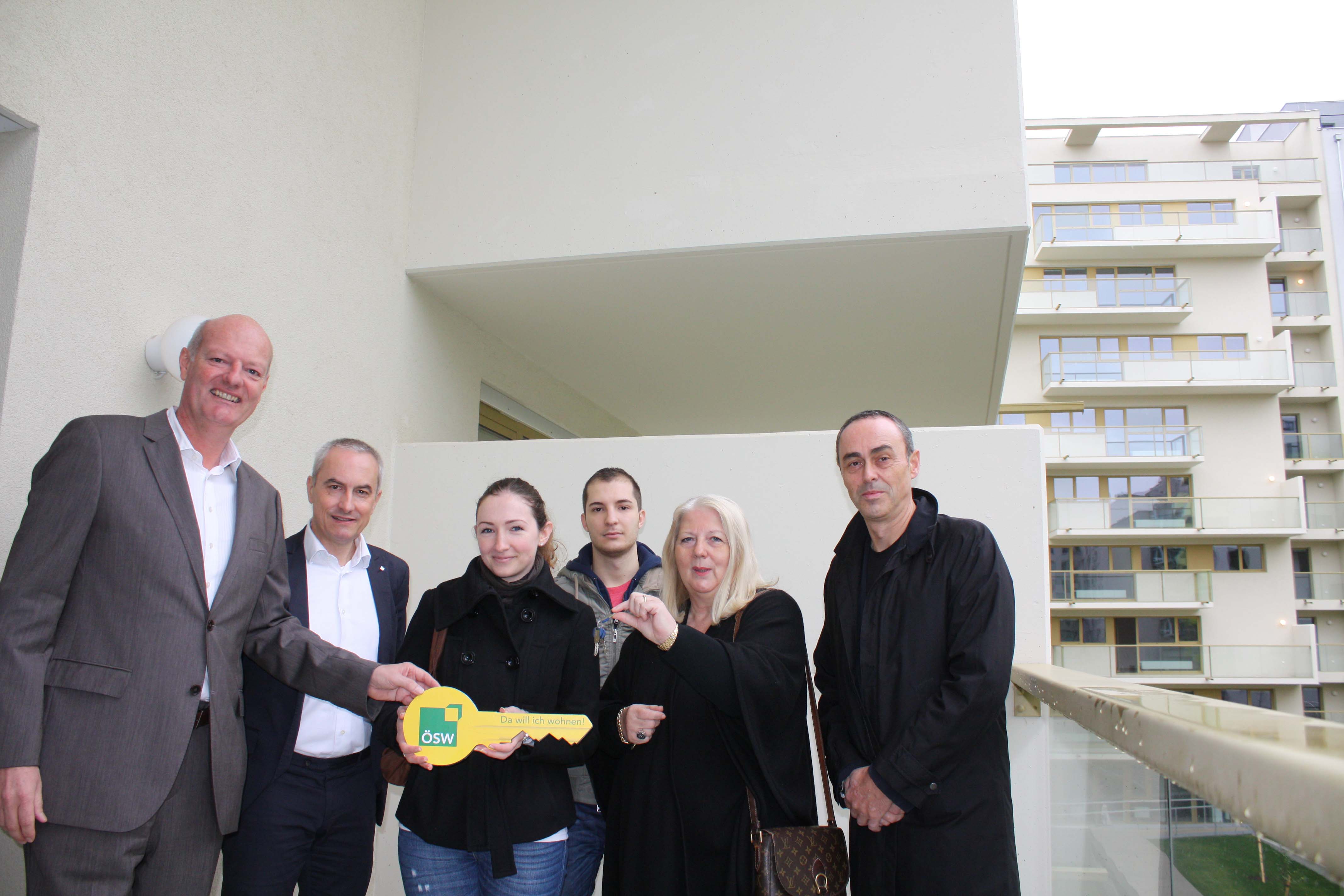 Im Projekt "Platform L – Lebensstationen" hat das Österreichische Siedlungswerk (ÖSW) im Sonnwendviertel, das sich innerhalb des neuen Stadtentwicklungsgebiets „Bahnhof Wien – Europa Mitte“ befindet, 92 geförderte Mietwohnungen, vier Home-Offices und zwei Lokalflächen errichtet. Am Montag, 11. November fand die feierliche Übergabe an die BewohnerInnen statt. Auch die Bezirksvorsteherin des 10. Bezirkes Hermine Mospointner, die Architekten Roman Delugan und Martin Josst vom Architekturbüro Delugan Meissl Associated Architects und die ÖSW-Vorstände Michael Pech und Wolfgang Wahlmüller waren bei der Übergabe vor Ort, um die neuen Bewohner in ihrem Zuhause willkommen zu heißen. Als Snack für die BewohnerInnen wurden passend zum Übergabedatum frische Krapfen angeboten. „Wir freuen uns mit dem Projekt „Platform L“ ein Teil des Stadtentwicklungsgebietes rund um den neuen Wiener Hauptbahnhof zu sein, um so leistbaren Wohnraum mit hochwertiger Architektur bieten zu können und wünschen allen Bewohnerinnen und Bewohnern viel Glück in ihrem neuen Zuhause!“, so ÖSW Vorstand Wolfgang Wahlmüller bei der Übergabe. Das Projekt setzt sich zum Ziel, ein möglichst breites Spektrum an Wohnungen bzw. Wohnungsmöglichkeiten anzubieten, das von allen Generationen angenommen werden kann. In dem vielfältigen und barrierefreien Wohnungsangebot können Singles, Paare, Familien mit Kindern und Senioren jede gewünschte Wohnform wählen und nachhaltig, an die im Verlauf des Lebens unterschiedlichen individuellen Wünsche und Bedürfnisse, anpassen. Das Besondere an diesem Projekt sind die loftartigen Wohneinheiten. Diese haben eine private Erschließung durch einen direkten Liftzugang in die Wohnung und verfügen über einen offenen und flexiblen Wohnungsgrundriss, der den Wohnbedürfnissen der BewohnerInnen durch die Abtrennung von ein bis drei nutzungsneutralen Räumen in nahezu allen Lebensphasen entgegenkommt. Die L-förmigen Fenster und Balkone geben der Fassade des Projektes nicht nur ihr architektonisch einzigartiges Gesicht, sondern verleihen den Räumen auch mehr Licht und Wärme. Für die Gestaltung des großzügigen Stiegenhauses konnte der Künstler Manfred Erjautz gewonnen werden, der im Luftraum des Stiegenhauses ein auch von außen und in der Nacht wahrnehmbares Licht-Kunstwerk über alle Geschosse geschaffen hat, das dem Wohnhaus eine zusätzliche einzigartige Identität und damit den BewohnerInnen eine stärkere Identifikation mit dem Gebäude geben soll.