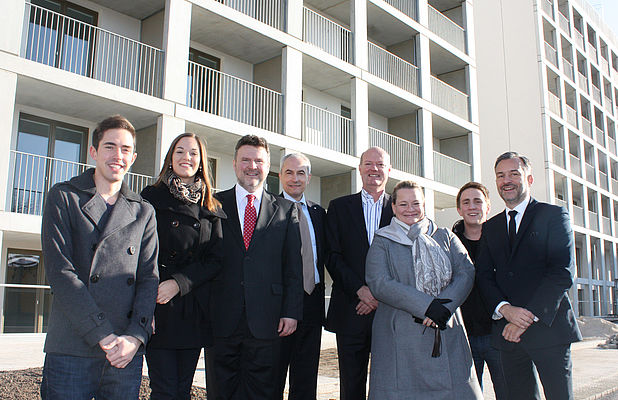 Am Montag, 28. November, kurz vor Fertigstellung des Projektes, durfte sich das CITYCOM?-Team nochmals über hohen Besuch freuen: Wohnbaustadtrat Michael Ludwig besuchte das innovative ÖSW Wohnprojekt CITYCOM? in der Leopoldstadt. „Der Bauträgerwettbewerb, aus dem CITYCOM? als eines der Siegerprojekte hervorgegangen ist, war dem Thema ,Junges und kostengünstiges Wohnen‘ gewidmet. Diesem Anspruch wird CITYCOM? auf innovative Weise gerecht. Die Stadt Wien fördert das Wohnprojekt für junge Wienerinnen und Wiener mit beträchtlichen Mitteln – insgesamt rund 7,4 Mio. Euro,“ hielt Wohnbaustadtrat Ludwig fest.