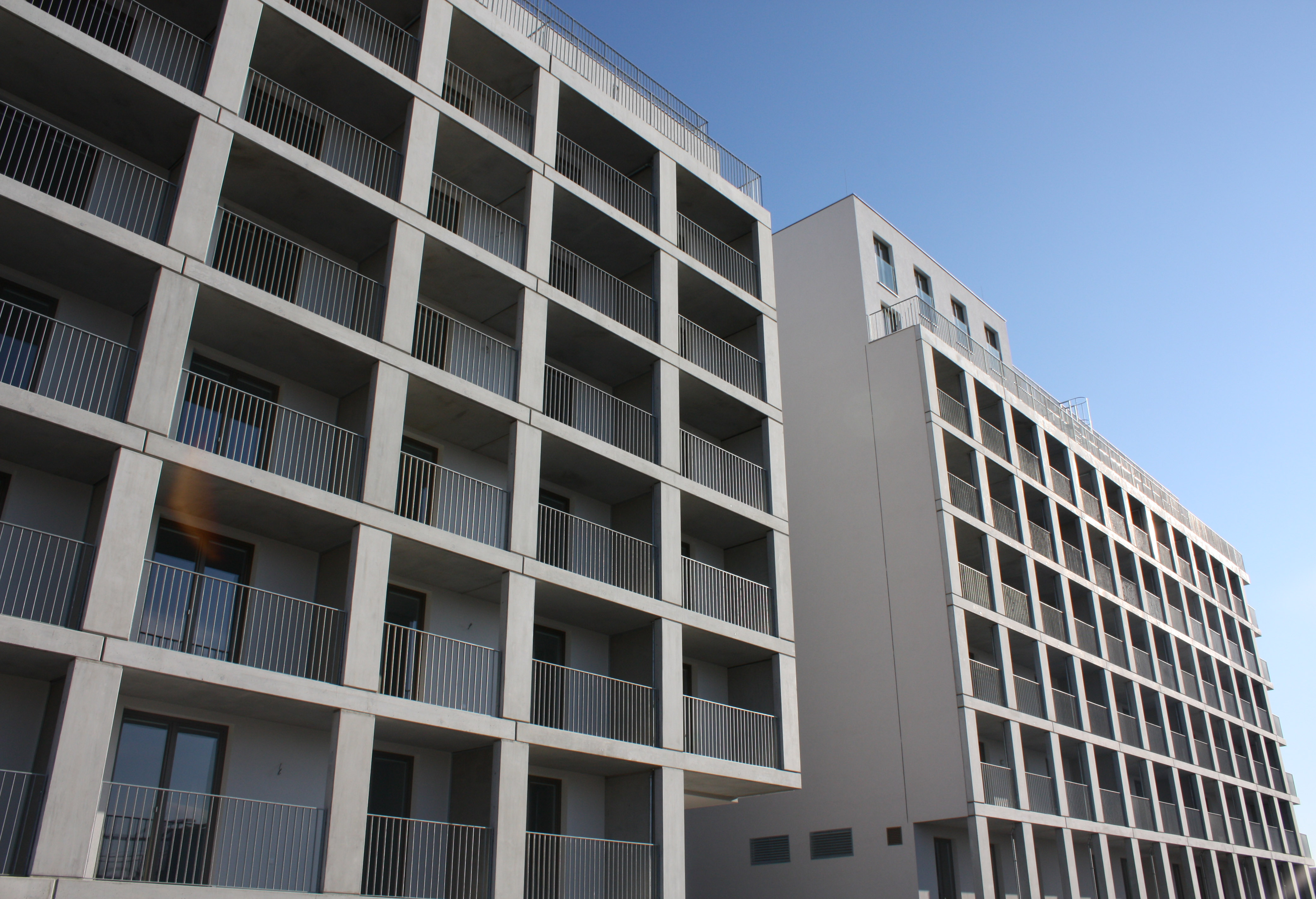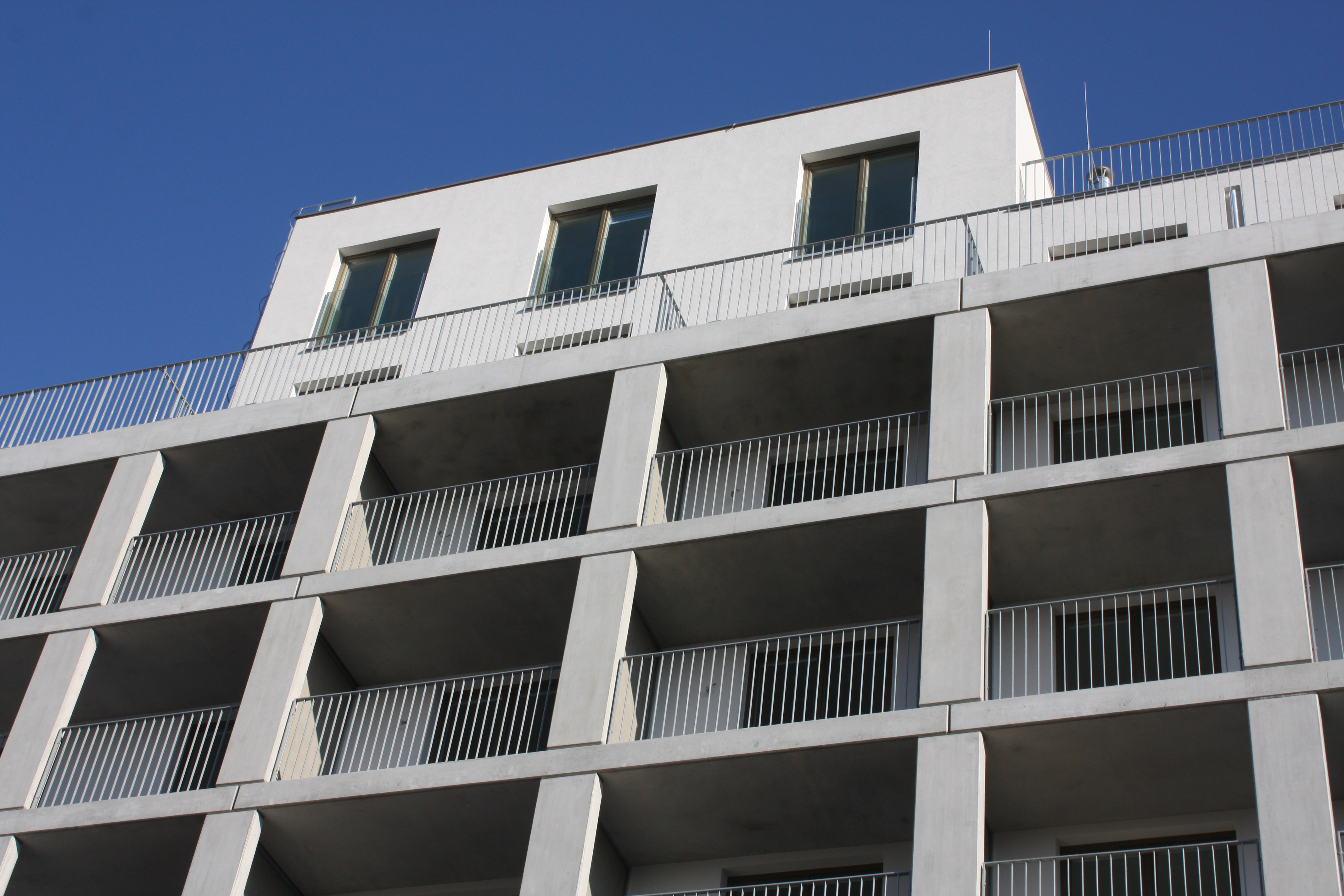 Und damit es keinen Ärger gibt: Die großen WGs verfügen über zwei kleine Badezimmer und mehrere WCs! Aber auch für Freiraum ist gesorgt. Jedes WG-Zimmer hat entweder eine Loggia oder eine Terrasse. Der Laubengang dient als Erweiterung der gemeinschaftlichen Zone zu den anderen WGs.