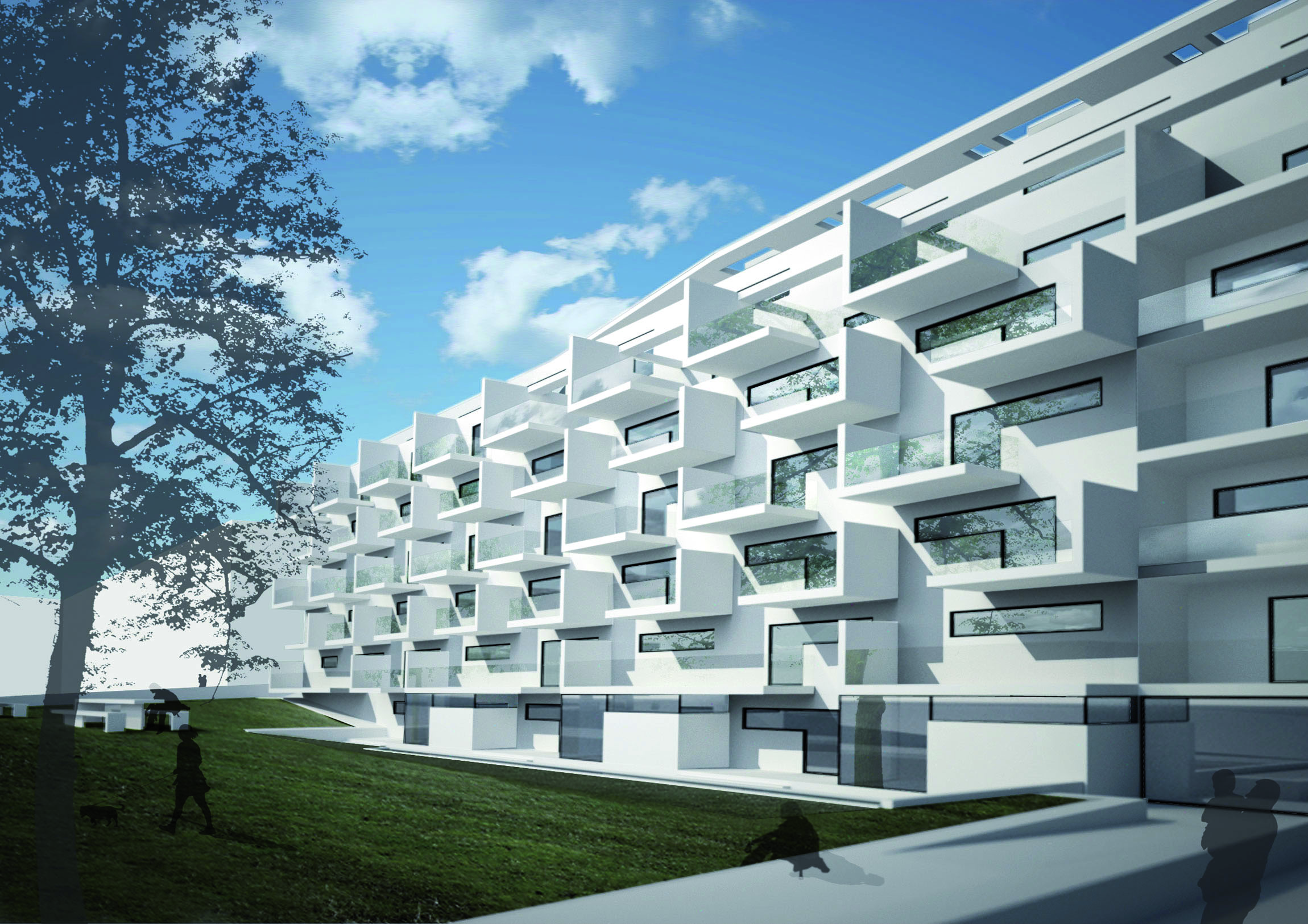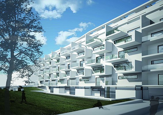 Das Besondere an diesem Projekt sind die loftartigen Wohneinheiten. Diese haben eine private Erschließung durch einen direkten Liftzugang in die Wohnung und verfügen über einen offenen und flexiblen Wohnungsgrundriss, der den Wohnbedürfnissen der BewohnerInnen durch die Abtrennung von ein bis drei nutzungsneutralen Räumen in nahezu allen Lebensphasen entgegenkommt. Die L-förmigenFenster und Balkone geben der Fassade des Projektes nicht nur ihr architektonisch einzigartiges Gesicht, sondern verleihen den Räumen auch mehr Licht und Wärme.