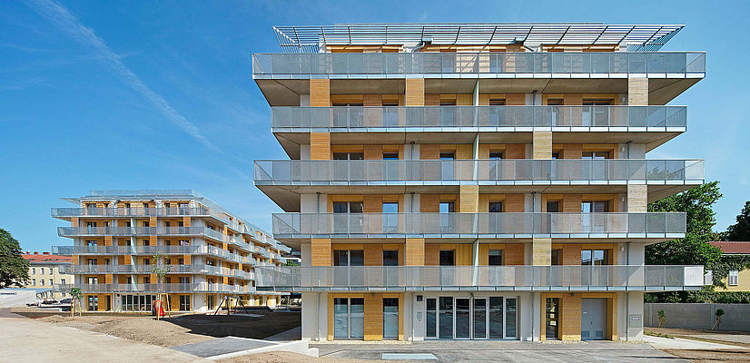 Aber auch energietechnisch beinhaltet das Projekt ein durchdachtes Konzept: Den hohen Ansprüchen der Energieeffizienz folgend, wurden die Gebäude im Passivhausstandard ausgeführt. Eine kontrollierte Wohnraum Be- und Entlüftung mit Wärmerückgewinnung wurde ebenfalls umgesetzt.
