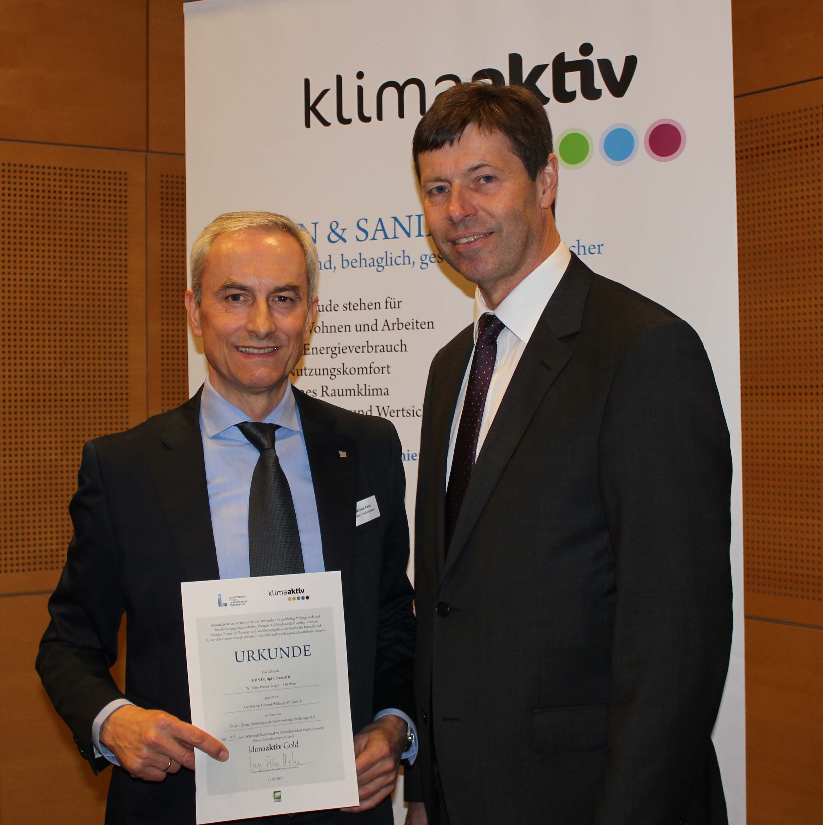 Nun erhielt das Projekt den „Gold Standard“ von „klimaaktiv“, einer Initiative des Ministeriums für ein lebenswertes Österreich, und wurde somit auch zum Objekt des Monats Februar 2015 gekürt. Die Auszeichnung wurde im Rahmen des „BauZ! –Wiener Kongress für zukunftsfähiges Bauen“ überreicht.