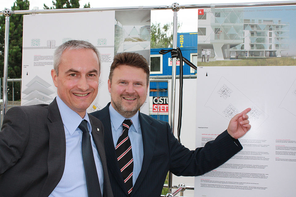 Am Freitag fand gemeinsam mit Wohnbaustadtrat Michael Ludwig die offizielle Grundsteinlegung für das Projekt Karree St. Marx statt.