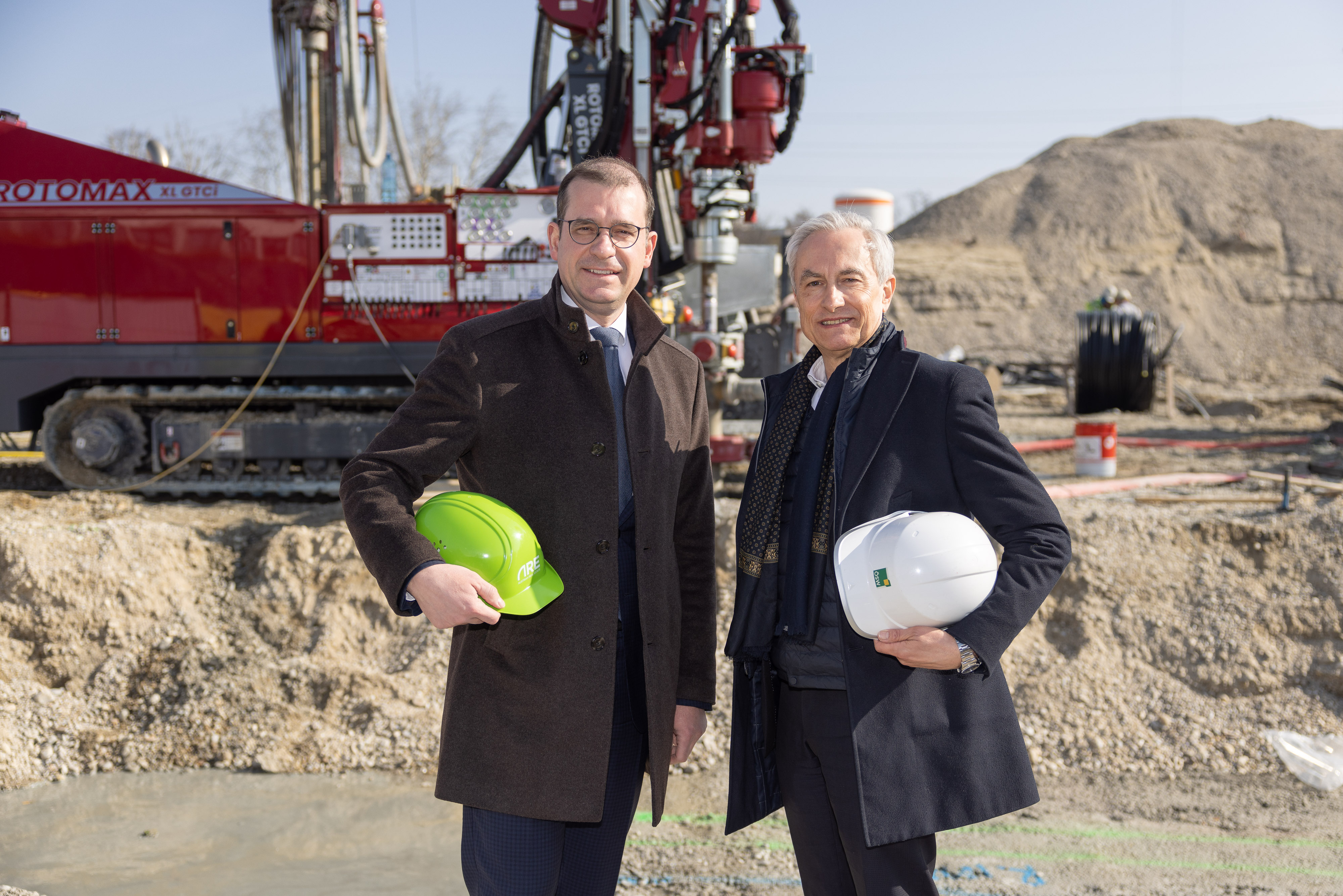 Nördlich der Donau entsteht am Rande eines Grünzugs, der bis zum Bisamberg reicht, das naturnahe Viertel "Hirschfeld". In der Gerasdorfer Straße 105-117, in direkter Nachbarschaft zum Marchfeldkanal, errichten die ARE Austrian Real Estate (ARE) als Quartiersentwicklerin und das Österreichische Sied- lungswerk (ÖSW) rund 440 Wohnungen und einen Kindergarten. Das gesamte Quartier wird dank Erd- wärme, Grundwasser und Sonnenenergie nahezu autark mit Energie versorgt. Anlässlich der Bohrungen für die Erdwärmesonden haben sich ARE CEO Hans-Peter Weiss und der Generaldirektor der ÖSW- Gruppe Michael Pech selbst ein Bild gemacht und den offiziellen Grundstein gelegt. Die Gesamtfertig- stellung ist für Frühjahr 2025 geplant.
