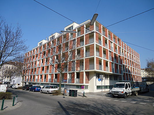 In der Angeligasse 24 in Wien Favoriten wurden 49 geförderte Mietwohnungen mit Eigentumsoption und ein Büro erbaut, die am 12. April 2012 an ihre Bewohner übergeben wurden. Die neuen Wohnungen haben zwischen 54 und 145 m² und verfügen alle über sehr großzügige Loggien oder Terrassen. Acht der Wohneinheiten wurden als Maisonetten ausgeführt.