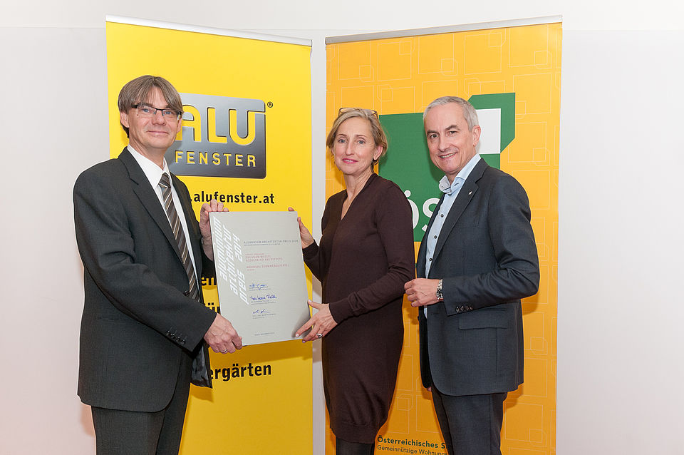 ÖSW-Vorstand Michael Pech zur Auszeichnung: „Wir haben im Sonnwendviertel einen architektonisch, ökonomisch und ökologisch richtungsweisenden Wohnbau realisiert. Die Auszeichnung beim Aluminium-Architektur-Preis der Gemeinschaftsmarke ALU-FENSTER bestätigt unser Engagement für das Lebenszyklusdenken.“