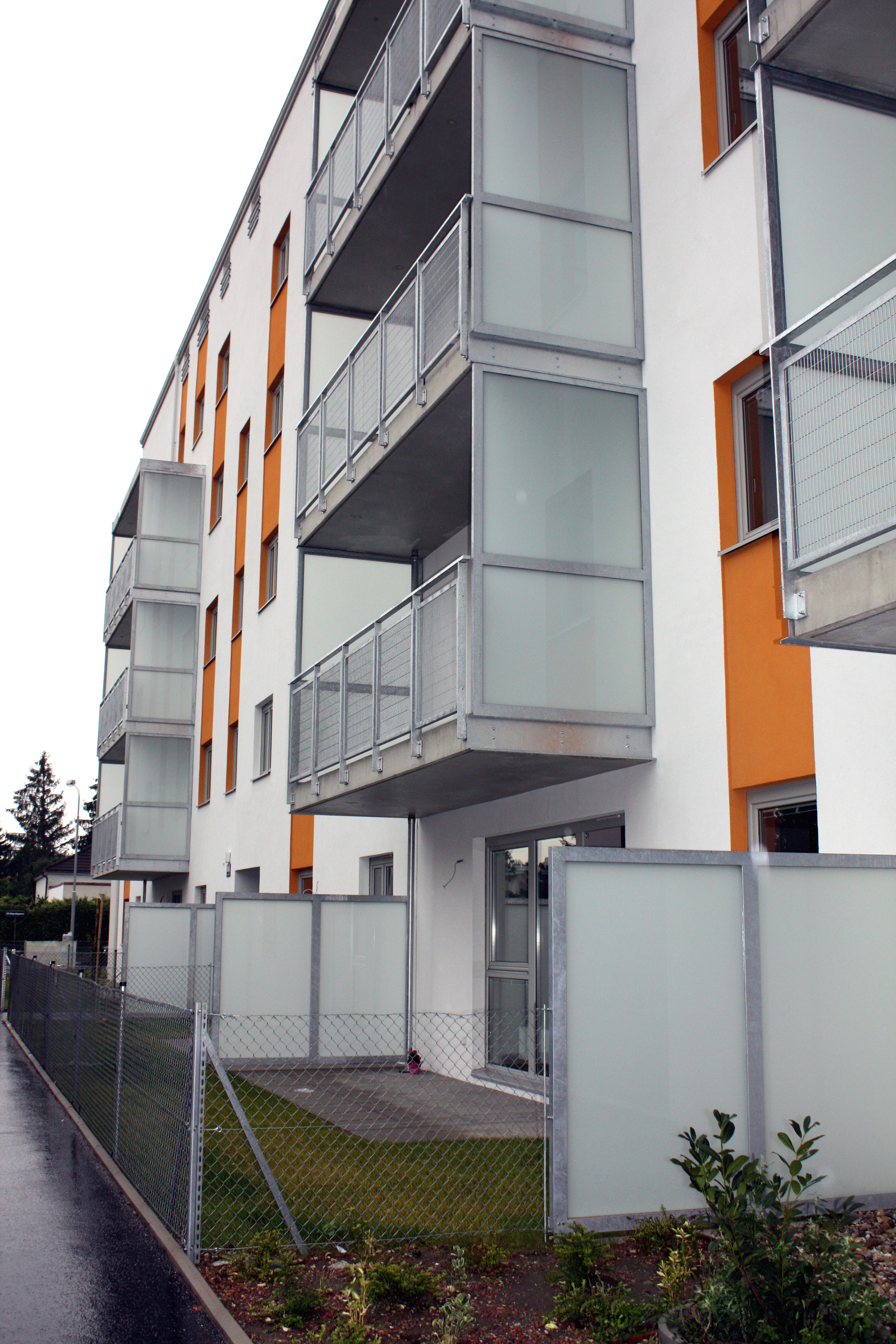 Die Wohnanlage besteht aus zwei Bauteilen, die süd- bzw. ost-west-orientiert ein vielfältiges Wohnungsangebot bieten. Fast alle Wohnungen sind durchgesteckt und querdurchlüftet und weisen Größen zwischen 45 und 128 m² auf. Auch Maisonettewohnungen wurden eingeplant. Alle Wohneinheiten verfügen über individuelle Freibereiche wie Loggien, Terrassen oder Balkone. Einige der Wohnungen sind mit Eigengärten ausgestattet. Holzböden in den Wohn- und Schlafbereichen schaffen eine warme, lebendige Wohnatmosphäre, die durch Helligkeit und Licht noch betont wird.