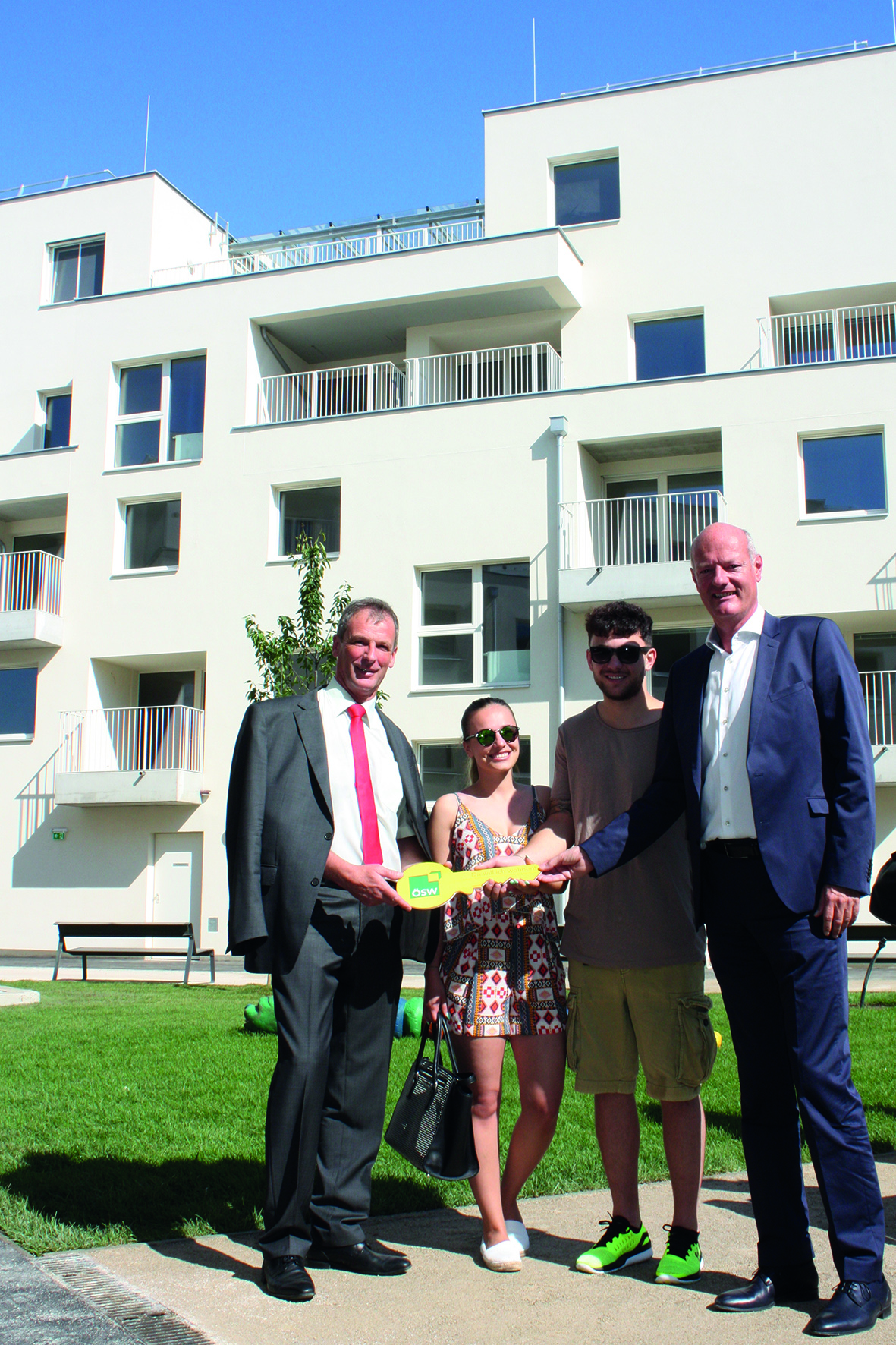 „Ich freue mich sehr, heute den neuen Bewohnern dieses Projekt übergeben zu dürfen. Es bietet mit seiner Lage nicht nur eine optimale Infrastruktur im Grünen, sondern ermöglicht mit dem vielseitigen Wohnungs- und Nutzungsangebot, der energieeffizienten Ausführung und der bedachten Auswahl an Materialien eine einmalige Wohn- und Lebensqualität zu einem leistbaren Preis“, so Wolfgang Wahlmüller, Vorstandsmitglied der ÖSW AG.