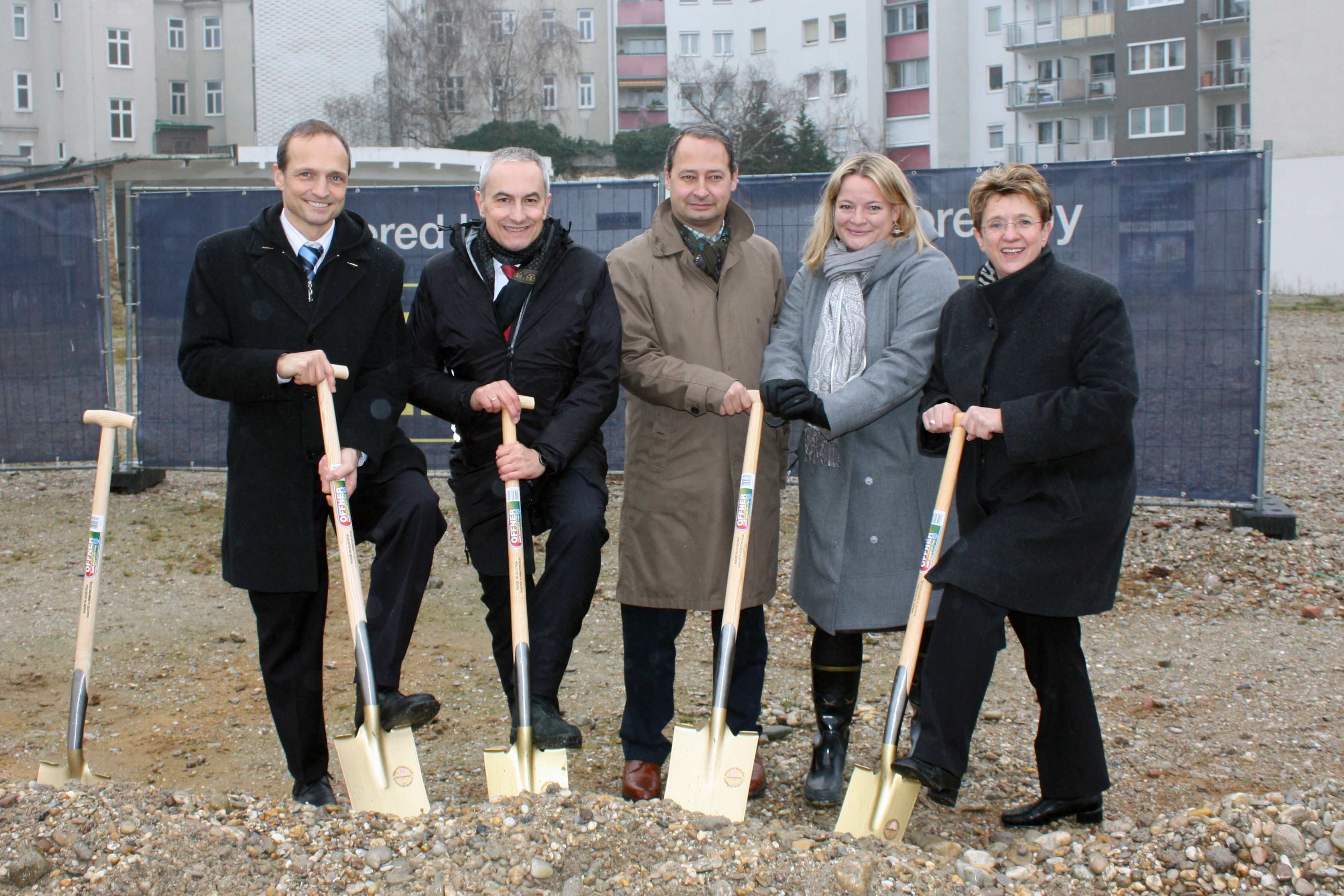 Am Freitag, 23. Dezember 2011, fand im großen Kreis der vorweihnachtlich feierliche Spatenstich statt.ÖSW Karrée Breitensee GmbH Geschäftsführerin Helga Mayer, die Vorstände der ÖSW AG Michael Pech und Wolfgang Wahlmüller sowie die WBV-GPA Geschäftsführung Andrea Holzmann und Michael Gehbauer konnten sich anlässlich dieses Termins über hohen Besuch freuen: Andreas Schieder, Staatssekretär im Bundesministerium für Finanzen, Wolfgang Gerstl, Abgeordneter zum Nationalrat und Andrea Kalchbrenner, Bezirksvorsteherin des 14. Bezirkes nahmen unter anderem an dem Spatenstich teil.
