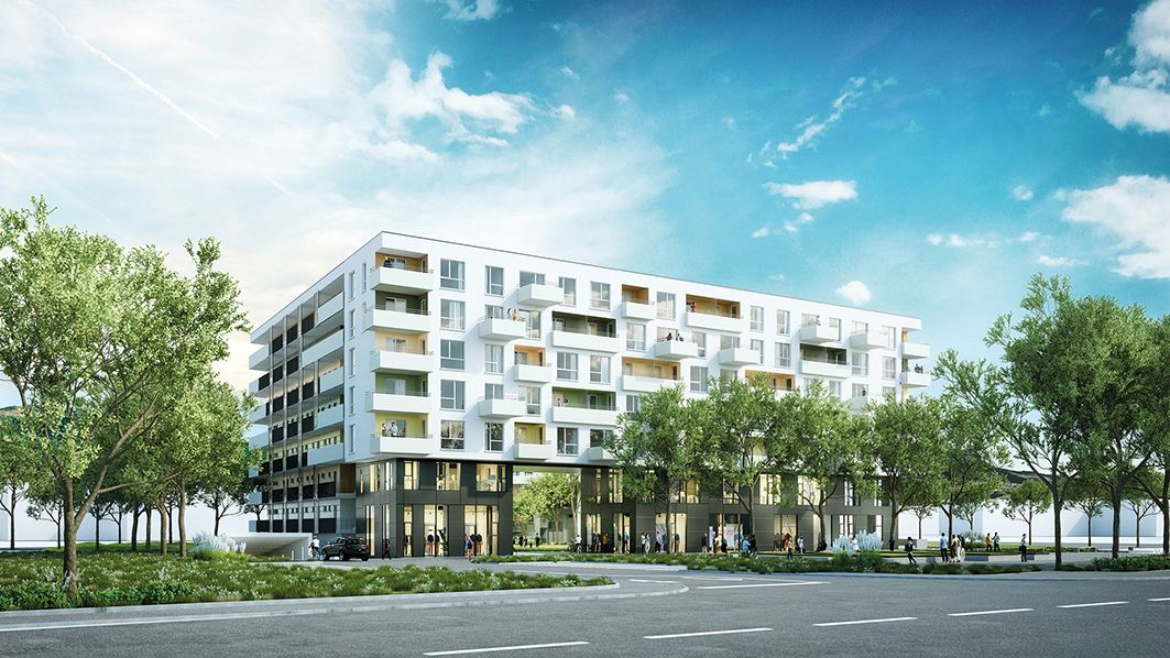 Das vom Architekturbüro Seeger geplante Gebäude im Norden des Entwicklungsgebiets, mit einer Gesamtnutzfläche von rund 9.800 m², liegt am mittleren Grundstück der „Linse“. Südlich vorgelagert, direkt an der Reininghausstraße, wird ein öffentlicher Platz realisiert. In dem als Blockrandverbauung konzipierten Gebäude entstehen auf sieben Stockwerken insgesamt 155 Mietwohnungen mit ein bis vier Zimmern und privaten Freiflächen als Loggia oder Balkon. Zudem bieten sechs Atelierwohnungen auf zwei Geschoßen die Möglichkeit, Arbeiten und Wohnen miteinander zu verbinden. Geschäftsflächen im Erdgeschoß sind, ebenso wie eine Tiefgarage mit 99 Stellplätzen, in Planung.