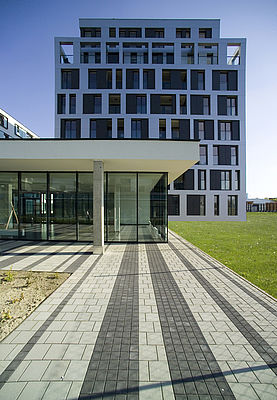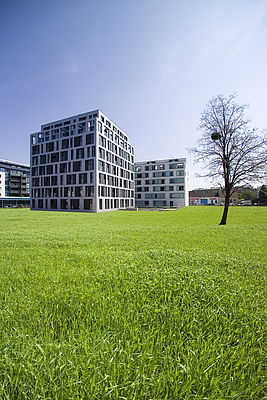 Die 101 geförderten Mietwohnungen mit Eigentumsoption verfügen über zwei bis dreieinhalb Zimmer mit Größen von 53 bis 124 m². Bei der Planung der Wohnungsgrundrisse wurde auf größtmögliche Flexibilität Rücksicht genommen. Alle Wohneinheiten sind mit privaten Freibereichen wie Terrassen oder Loggien ausgestattet. Zudem sorgt eine große, westseitige Gemeinschaftsterrasse für Erholung.