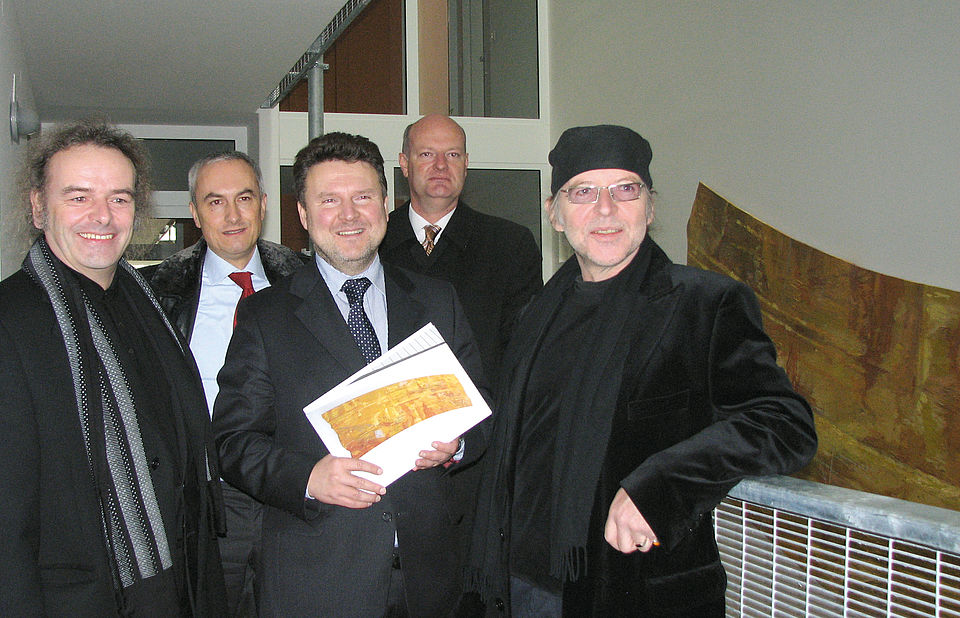 Der Wiener Wohnbaustadtrat Michael Ludwig hat in der Wohnanlage des Österreichischen Siedlungswerks (ÖSW) in der Thürnlhofstraße 12 das Objektbild des Künstlers Gerhard Kohlbauer vorgestellt.