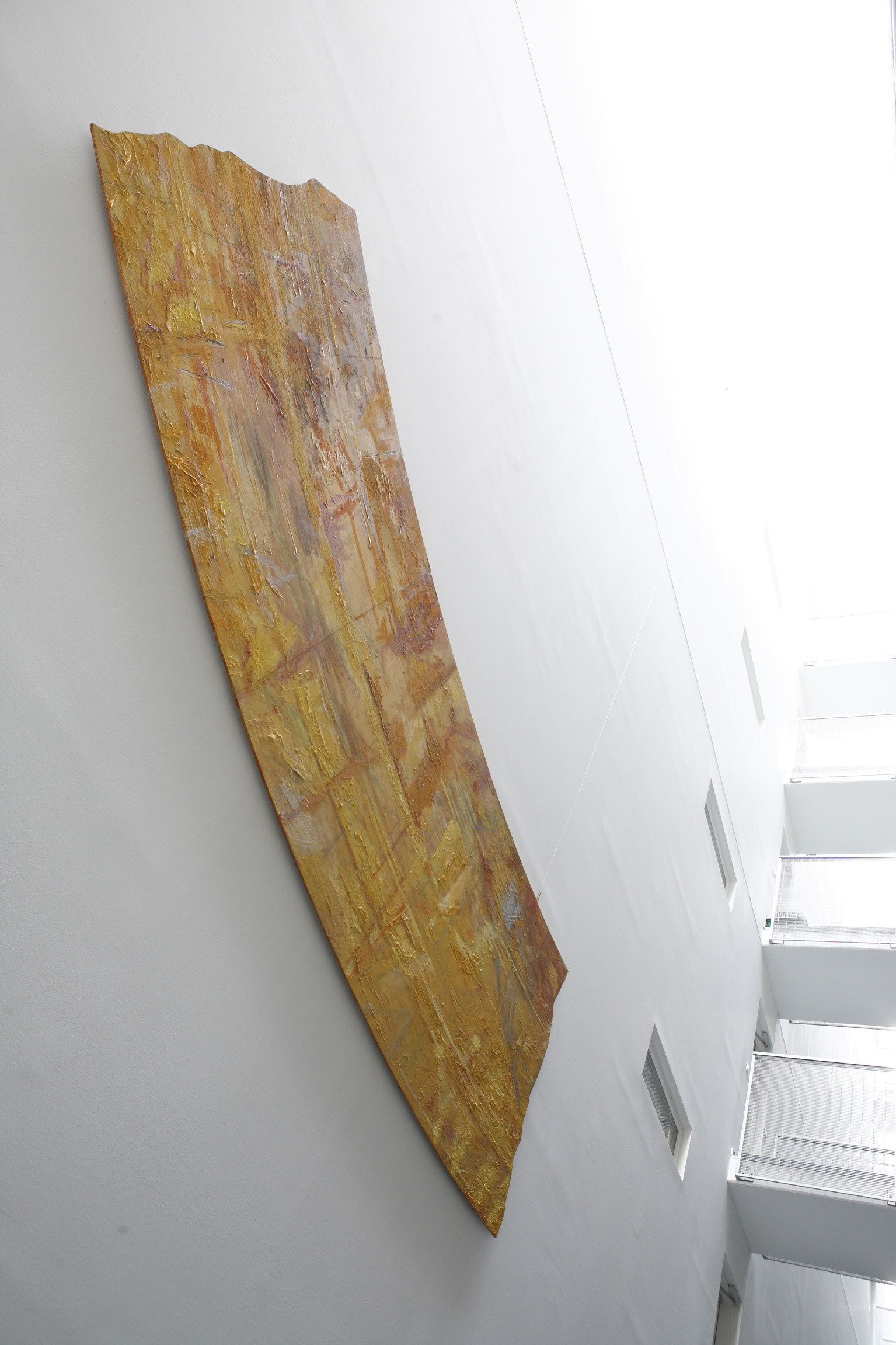 Wien - Am Freitag, den 23. November 2007, hat Wohnbaustadtrat Michael Ludwig gemeinsam mit den ÖSW-Vorständen Michael Pech und Wolfgang Wahlmüller sowie dem Künstler Gerhard Kohlbauer und Architekt Martin Kohlbauer das Kunstobjekt in der ÖSW-Wohnanlage Thürnlhofstraße 12 präsentiert. In der siebenstöckigen Halle des von Martin Kohlbauer geplanten Wohnbaus in Wien-Simmering hat dessen Bruder Gerhard Kohlbauer das Objektbild "ARCHAIC WHEEL Fragment" gestaltet. Durch die Zusammenarbeit der Brüder Kohlbauer ist eine besondere Verbindung zwischen Kunst und Architektur gelungen. Das Kunstobjekt ist speziell für diesen Ort entstanden. In der großen Halle mit Laubengängen und Brücken zu den Wohnungen ist an der 24 Meter hohen Wand die Darstellung eines Radfragmentes zu sehen. Es erscheint wie das Fundstück eines überdimensionalen, vorzeitlichen Rades. Der Durchmesser beträgt zehn Meter; der Mittelpunkt ist markiert - ein Lot weist auf den inneren Radius hin. Die verwendeten Materialien sind Acryl, Kunstharz, Sand, Holz sowie eine Metallscheibe, ein Seil und ein Messinglot. Das Kunstwerk ist 5,25 mal 1,5 Meter groß und fünfteilig.