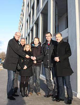 Nach 1,5 Jahren Bauzeit, 2 großen get2gether, vielen roomie lounges und viel Spaß und Arbeit für alle Beteiligten war es letzte Woche so weit: Am Montag wurden die 98 Apartments und am Mittwoch die 42 WGs des Projektes CITYCOM? an ihre Bewohner übergeben! Viele frischgebackene WG-Bewohner kamen am Mittwoch gleich mit einer Vielzahl von Koffern um sofort, wenn auch provisorisch, einziehen zu können. Eine teilmöblierte Wohnküche inkl. aller Geräte, die in allen WGs zu finden ist, ermöglichte ihnen immerhin eine gute Verpflegung für die ersten Tage. Die Begeisterung endlich „richtig loslegen“ zu können war groß. Auch ÖSW Vorstand Wolfgang Wahlmüller gab sich bei der Übergabe begeistert: „Es ist mir eine Freude zu sehen wie viele junge und junggebliebene Menschen hier gemeinsam einen neuen Lebensabschnitt beginnen! Ich wünsche der gesamten CITYCOM? Community einen guten Start in ihren neuen vier Wänden!“