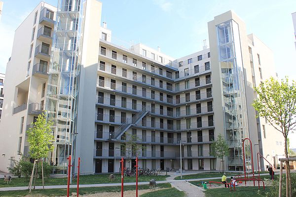 Zusätzlich sorgen Gemeinschaftsräume, die zusammen mit den Apartmentmietern genutzt werden, wie Dachterrasse, Sauna, Fahrradwerkstatt, ASKÖ-Wien-Bewegungsraum und vieles mehr für eine Vielzahl von Freizeit- und Kommunikationsmöglichkeiten. Für die wärmeren Jahreszeiten besonders toll: Ein großer Hausgemeinschaftsgarten mit Kleinkinderspielplatz, bequemen Relaxliegen, Wackelwildschweinen und Spieleplatz.