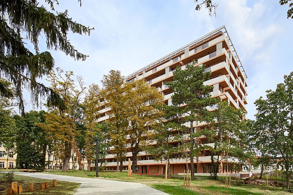 Die Besonderheit dieses Areals ist der alte Baumbestand aus der Gründerzeit, der in großem Umfang bewahrt werden konnte. Entsprechend dem städtebaulichen Konzept des Wiener Architekturbüros driendl*architects wurden auf Basis des Wettbewerbs sieben Bauplätze geschaffen, die von vier Architekturteams beplant und deren Entwürfe in Folge von den Bauträgern ÖSW, WBV-GPA, Volksbau und Eisenhof umgesetzt wurden.