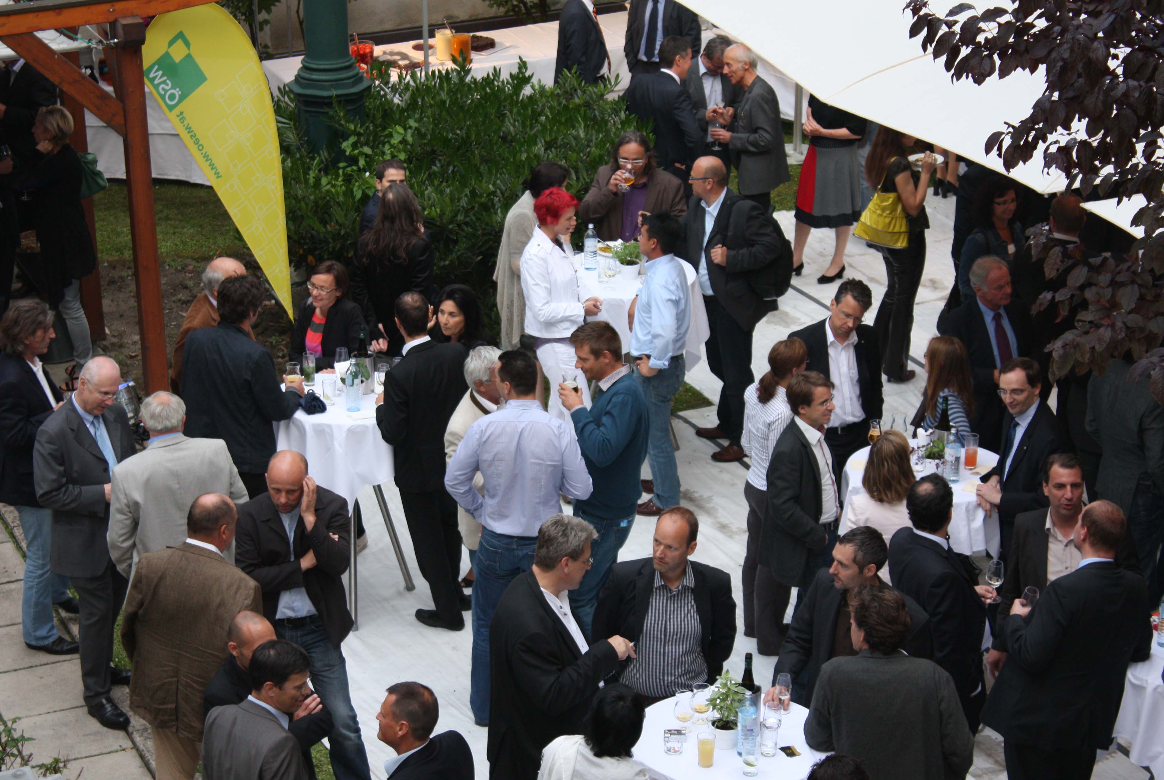 Das schöne Ambiente des begrünten Innenhofs lud mit Erfrischungen an Sektbzw. Cocktailbar alle Anwesenden zum gegenseitigen Austausch ein. Die Bowle als Willkommensdrink fand großen Anklang und bot einen erfrischenden Start in den Abend. Für das leibliche Wohl der Besucher war bestens gesorgt. Zahlreiche feine Köstlichkeiten aus verschiedensten österreichischen Regionen bereicherten den festlichen Abend. Bei ausgelassener Stimmung genossen die Gäste unterhaltsame Stunden und das vielfältige kulinarische Angebot.