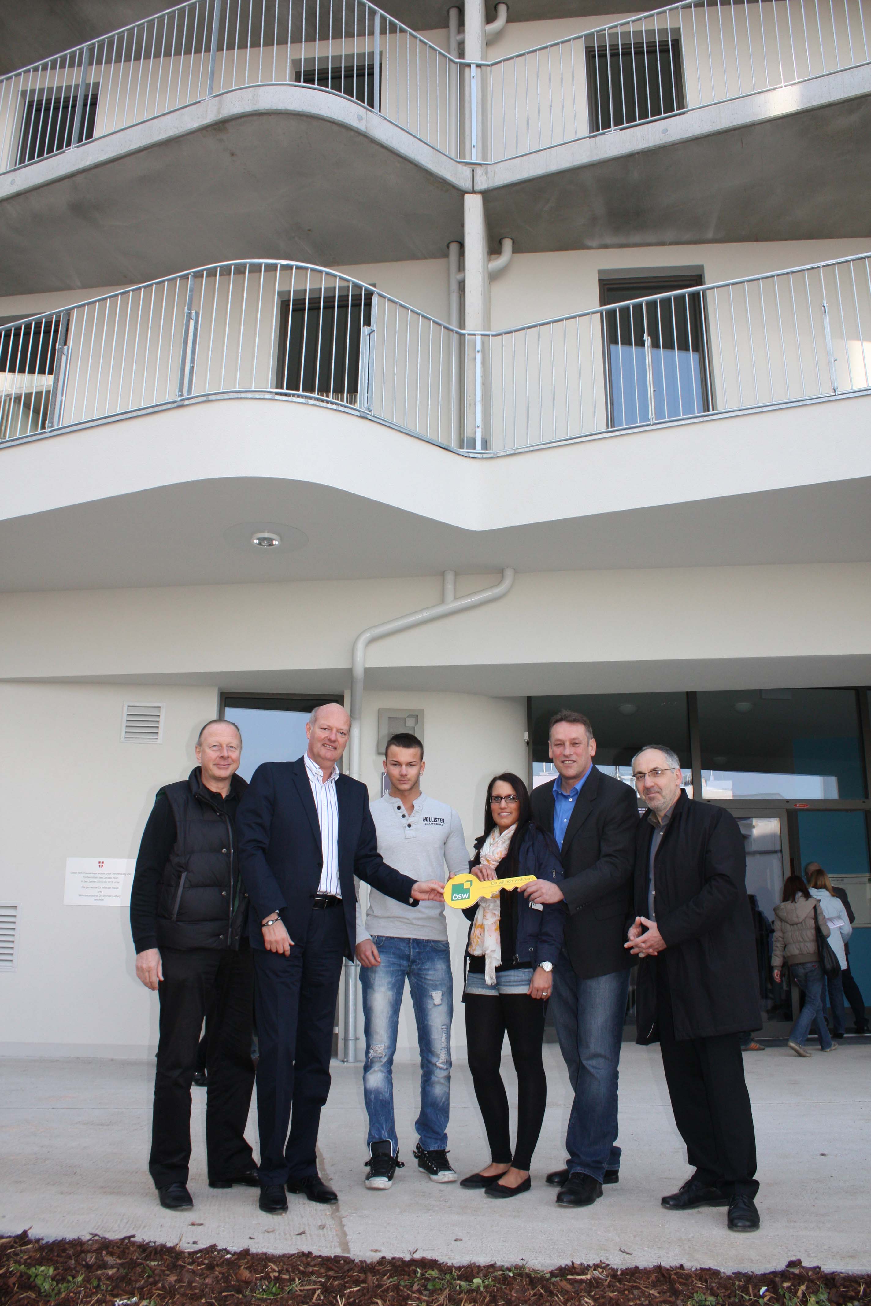 Bezirksvorsteher Norbert Scheed hat es sich nicht entgehen lassen, die neuen Bewohner seines Bezirkes persönlich Willkommen zu heißen. ÖSW-Vorstand Wolfgang Wahlmüller bei der Übergabe: „Es ist nicht nur unser Bestreben nachhaltige Bauwerke zu errichten, sondern auch durch unser umfangreiches Betreuungs- und Dienstleistungsangebot den Bewohnern langfristig wertvollen Lebensraum zu schaffen.“