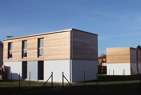 Das Projekt in der Lobaugasse zeichnet sich durch gut geschnittene Grundrisse aus. Die Wohnfläche der geförderten Miethäuser mit Eigentumsoption beträgt 83 m². Im Erdgeschoss befinden sich eine Wohnküche, Diele, WC sowie ein Abstellraum. Das Erdgeschoss ist großzügig verglast und ermöglicht somit ein lichtdurchflutetes Wohnerlebnis. Im Obergeschoss hat das Planungsteam zwei Zimmer sowie ein Bad mit WC vorgesehen. Auch die Zimmer im Obergeschoss verfügen über eine großzügige Verglasung, die ausreichend Licht in die Räume strahlen lässt. Vom Erdgeschoss aus gelangen die künftigen Bewohner über eine Terrasse in den eigenen Garten. Die Gärten sind zwischen 165 und 329 m² groß und sind damit vor allem in der warmen Jahreszeit ideal zur Erweiterung des Wohnraums.