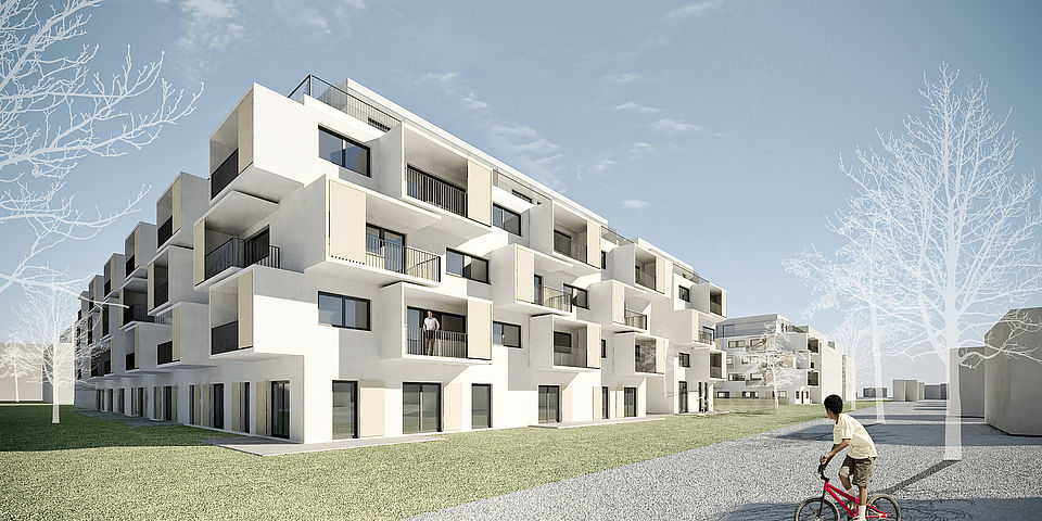 Neben der Sportlandschaft am Dach stellen eine Spiel- und Liegewiese sowie ein Kinder- und Jugendspielbereich mit Wasserspiel grüne Inseln in der Wohnanlage dar. Ebenso ist ein Kleinkinderspielbereich geplant. Die allgemeinen Freiräume im rückwärtigen Bereich sind als Streuobstwiesen gestaltet und dienen eher der ruhigen Entspannung. Da ausgeprägte soziale Beziehungsgeflechte im Wohnquartier ein wesentliches Element von Wohnqualität darstellen, sollen im Rahmen der Projektbegleitung bis zur Übergabe regelmäßige Treffen stattfinden. Diese werden durch den Bauträger unter Hinzuziehung von Architekten, Landschaftsplanern, etc. moderiert. Dadurch soll der Aufbau nachbarschaftlicher Kommunikation, das Gemeinschaftsgefühl und die Identifikation mit dem Wohngebiet gefördert werden. Die ÖSW AG steht an der Spitze der ÖSW-Firmengruppe, die 25 Unternehmen umfasst und ca. 50.000 Einheiten verwaltet. Damit ist der Konzern der größte private gemeinnützige Bauträger in Österreich. Neben dem Wiener Markt ist das Österreichische Siedlungswerk schwerpunktmäßig in den Bundesländern Niederösterreich, Salzburg und Kärnten tätig.