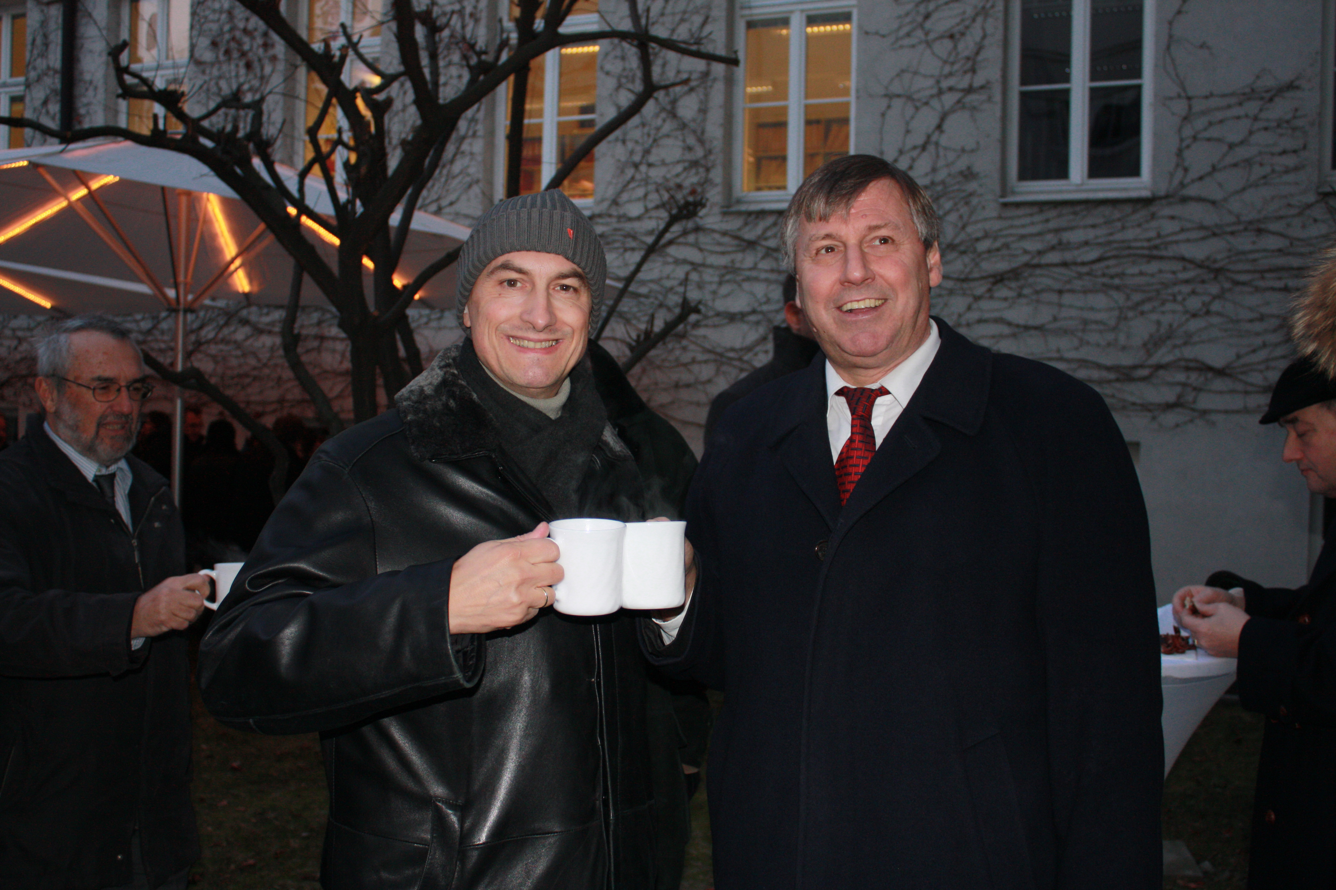 Wien - Am Donnerstag, den 8. Jänner 2009, luden die Vorstände des Österreichischen Siedlungswerks, Michael Pech und Wolfgang Wahlmüller, zum traditionellen Neujahrspunsch in den Innenhof des ÖSW-Firmensitzes. Mehr als 350 Gäste aus Bauwirtschaft, Finanz, Architektur und Politik waren der Einladung gefolgt und nahmen die Gelegenheit zum Kennenlernen, gegenseitigen Austausch und Networken wahr. Viele prominente Gäste nutzten die Feierlichkeit zum informellen Beisammensein im Freien.