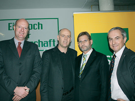 Wissenschaftsminister Hahn bei Dachgleiche des ÖSW-Passivhausprojekts Kandlgasse